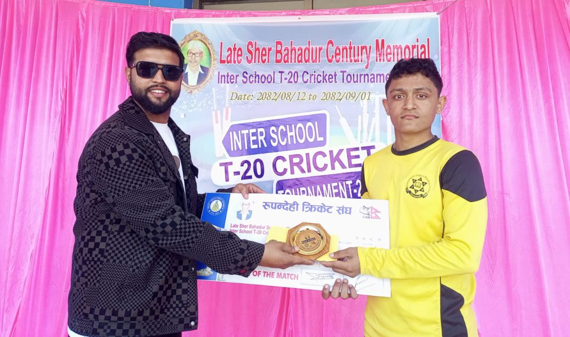 भैरहवा।भैरहवामा जारी स्वर्गीय शेरबहादुर सेन्चुरी स्मृति अन्तरविद्यालय टी–२० क्रिकेट प्रतियोगिता अन्तर्गत बिहीबार भएका दुई खेलमा कुँवरवर्ती सेकेन्डरी स्कूल र होराइजन जीवीएस विजयी भएका छन् । कुँवरवर्तीले दीप बोर्डिङ स्कूललाई ४८ रनले हराउँदा होराइजनले बृहष्पति स्कूललाई ५ विकेले पराजित गरेको छ ।