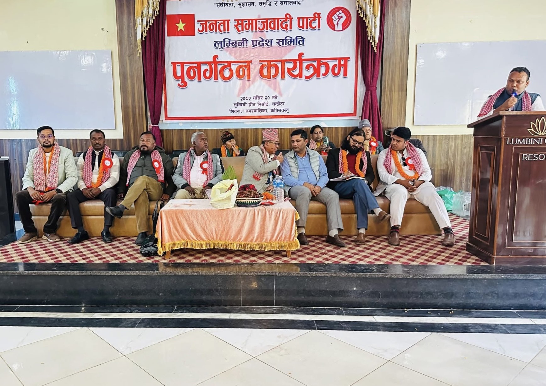 बुटवल ।अशोक कुमार राई नेतृत्वको जनता समाजवादी पार्टीले लुम्बिनी प्रदेश समिति पुनर्गठन गरेको छ । शनिबार कपिलवस्तु जिल्लामा सम्पन्न पार्टीको प्रदेश समिति पुनर्गठन भेलाले अकरम पठानको अध्यक्षतामा ५१ सदस्यीय प्रदेश समिति गठन गरेको हो ।
