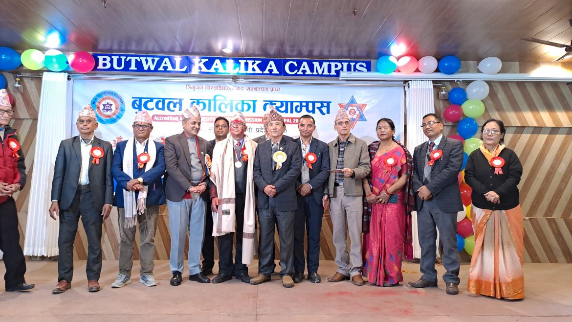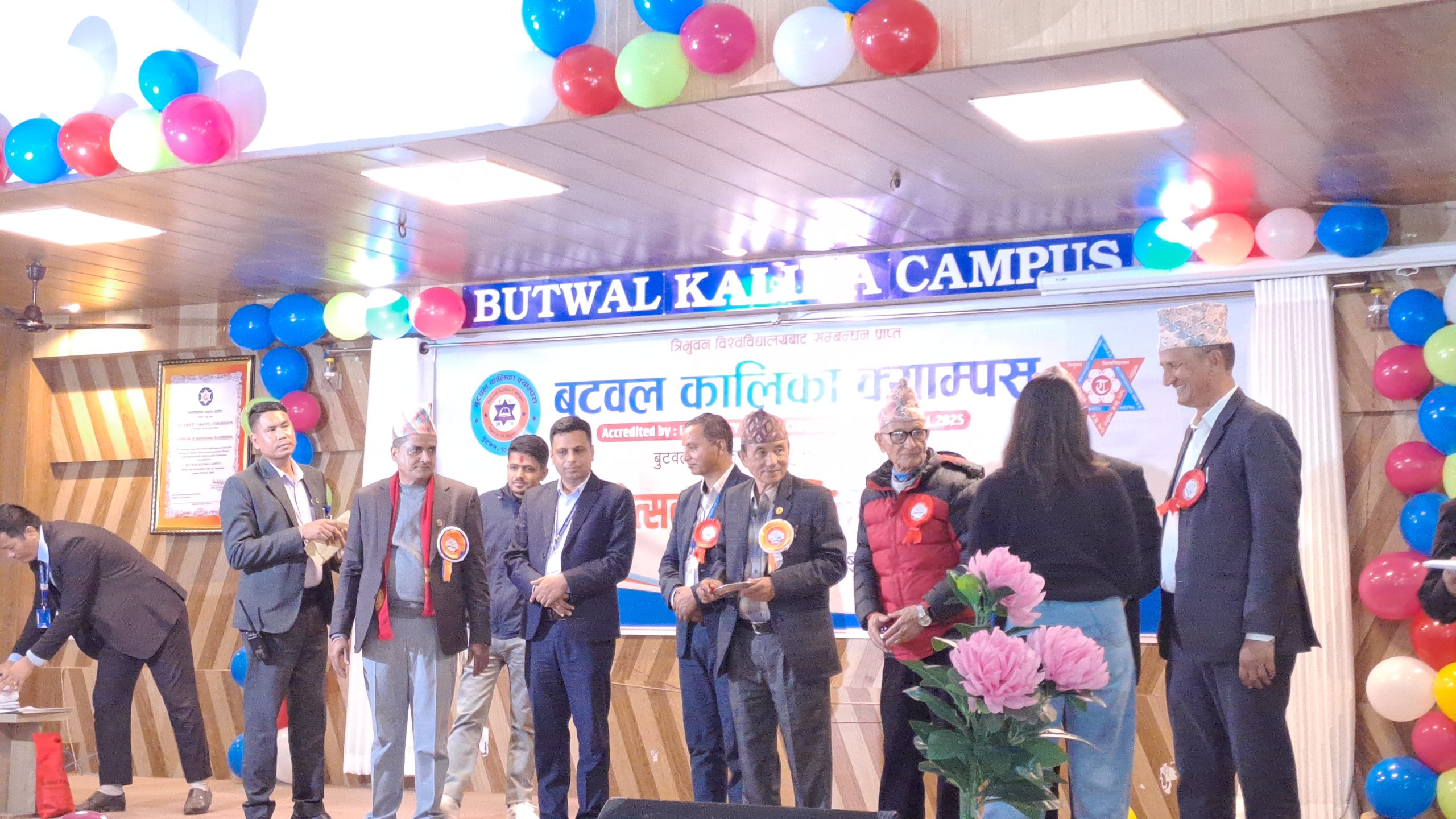 कार्यक्रममा बुटवल उपमहानगरपालिकाका मेयर खेलराज पाण्डेयले बुटवल कालिका क्याम्पसले शिक्षा क्षेत्रमै देशभर उदाहरणीय काम गर्दै आएको बताए। विद्यालयबाट क्याम्पससम्मको यात्रामा हासिल गरेको उपलब्धि प्रशंसनीय रहेको उल्लेख गर्दै उनले युवालाई आकर्षित गर्न शिक्षा, सीप र प्रविधिलाई जोडेर नयाँ कार्यक्रम ल्याउनुपर्ने सुझाव दिए। व्यावहारिक तथा सीपमूलक शिक्षामार्फत युवा पलायन रोक्न सम्भव रहेको उनले बताए।