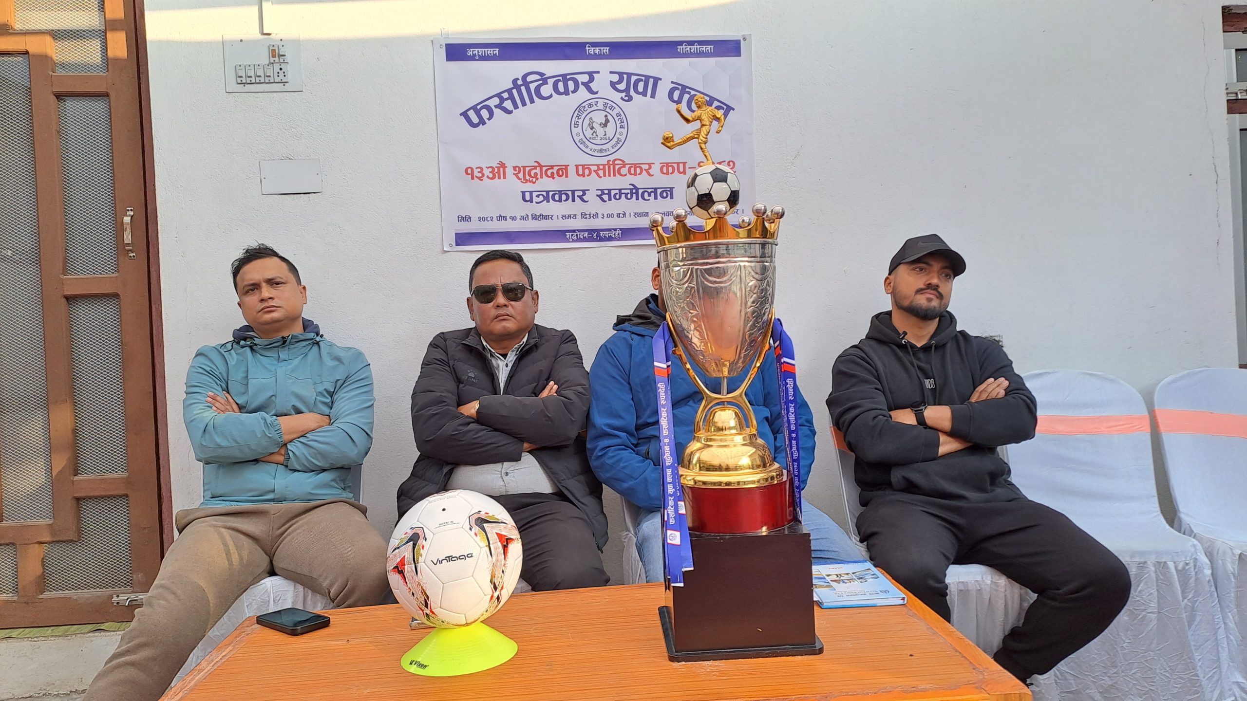 बुटवल।रुपन्देहीको शुद्धोदन गाउँपालिकामा १३औँ संस्करणको फर्साटिकर कप फुटबल प्रतियोगिता पुस १५ गतेदेखि माघ २६ गतेसम्म सञ्चालन हुने भएको छ । फर्साटिकर युवा क्लब रुपन्देहीको आयोजनामा हुने प्रतियोगिताबारे बिहीबार आयोजित पत्रकार सम्मेलनमार्फत जानकारी गराइएको हो ।