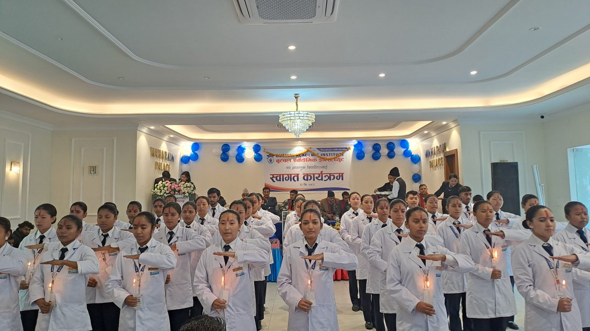 त्यसैगरी कार्यक्रमको अध्यक्षता गर्दै बुटवल एकेडेमिक इन्स्टिच्युटका कार्यलारी विनोद घिमिरेले विद्यार्थीहरूलाई अनुशासित, जिम्मेवार र सेवाभावयुक्त स्वास्थ्यकर्मी बन्न प्रेरित गरे । उनले संस्थाले गुणस्तरीय शिक्षा र व्यवहारिक तालिमलाई प्राथमिकतामा राख्दै आएको जानकारी दिए ।