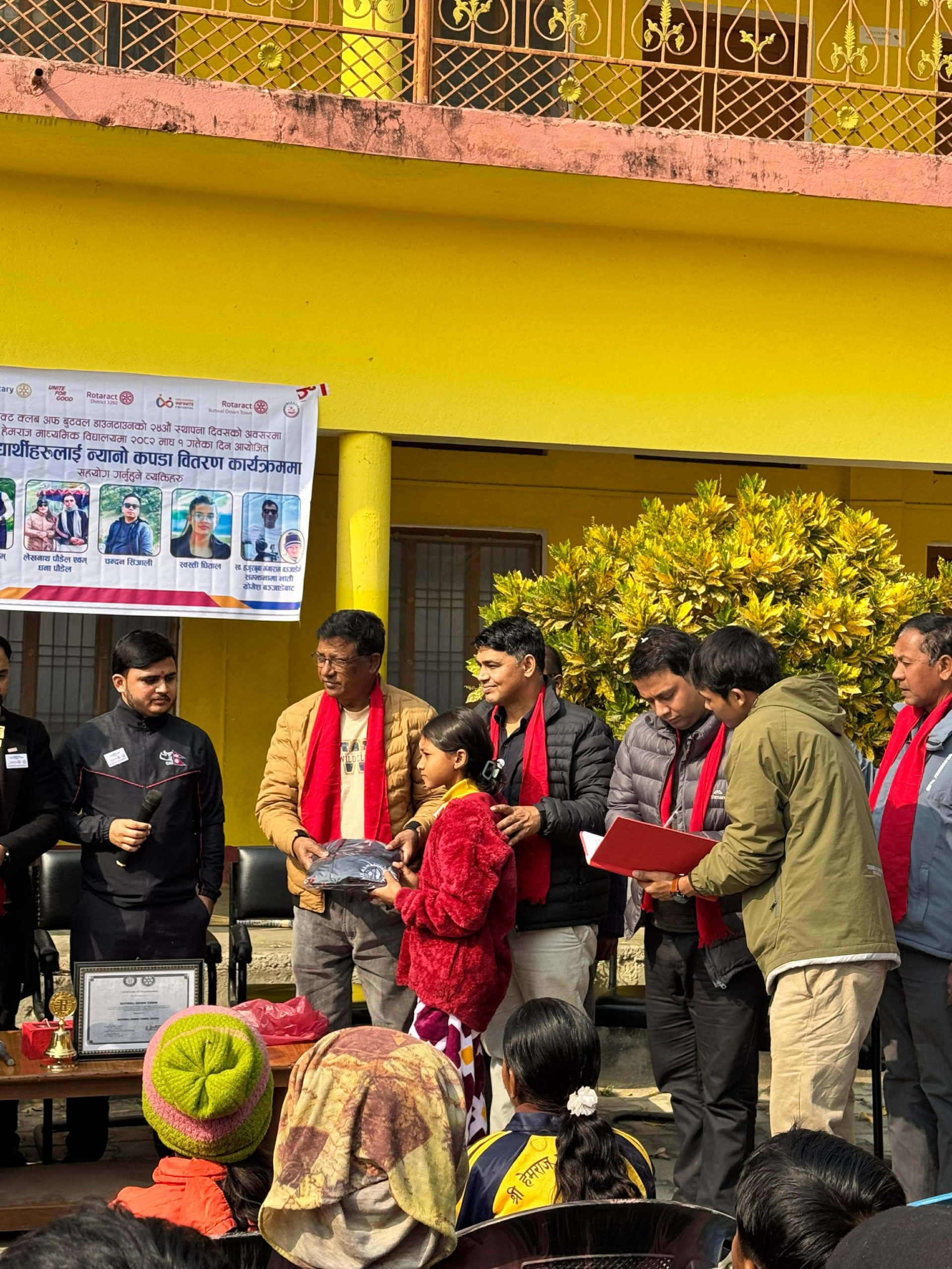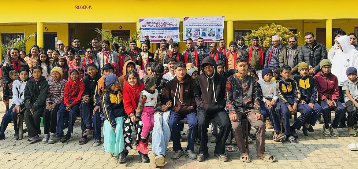 २४औँ स्थापना दिवसमा रोट्रयाक्ट क्लब अफ बुटवल डाउन टाउनद्वारा १०१ विद्यार्थीलाई न्यानो कपडा वितरण
