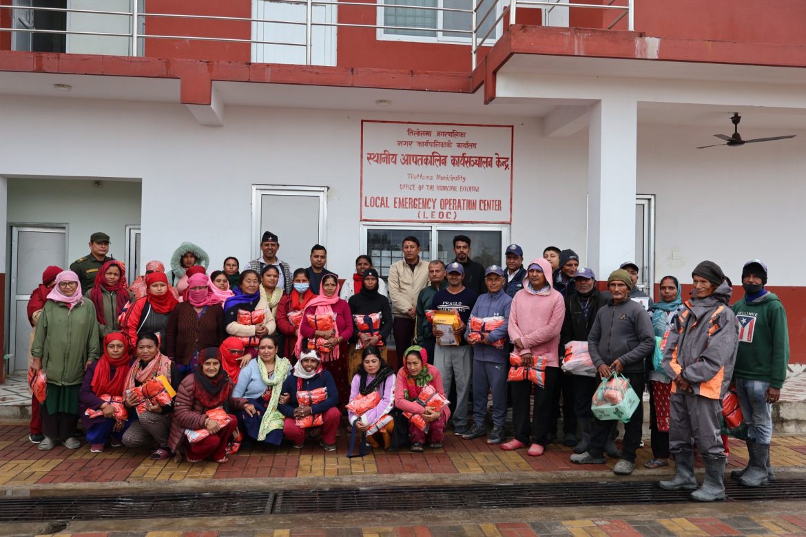 तिलोत्तमा । तिलोत्तमालाई ग्रिन तिलोत्तमा क्लिन तिलोत्तमा गराउन महत्वपुर्ण भूमिका खेल्नुभएका सबै सरसफाई कर्मीहरुलाई पोशाक तथा जुत्ता बितरण गरिएको छ।तिलोत्तमा नगरपालिका बाताबरण तथा विपद व्यवस्थापन शाखाले नगर भित्र सरसफाई कार्यमा सम्मिलित कर्मचारीहरुलाई पोशाक तथा जुत्ता वितरण गरेको हो ।