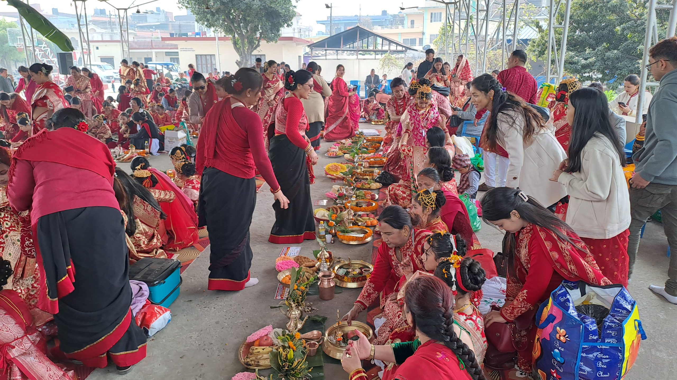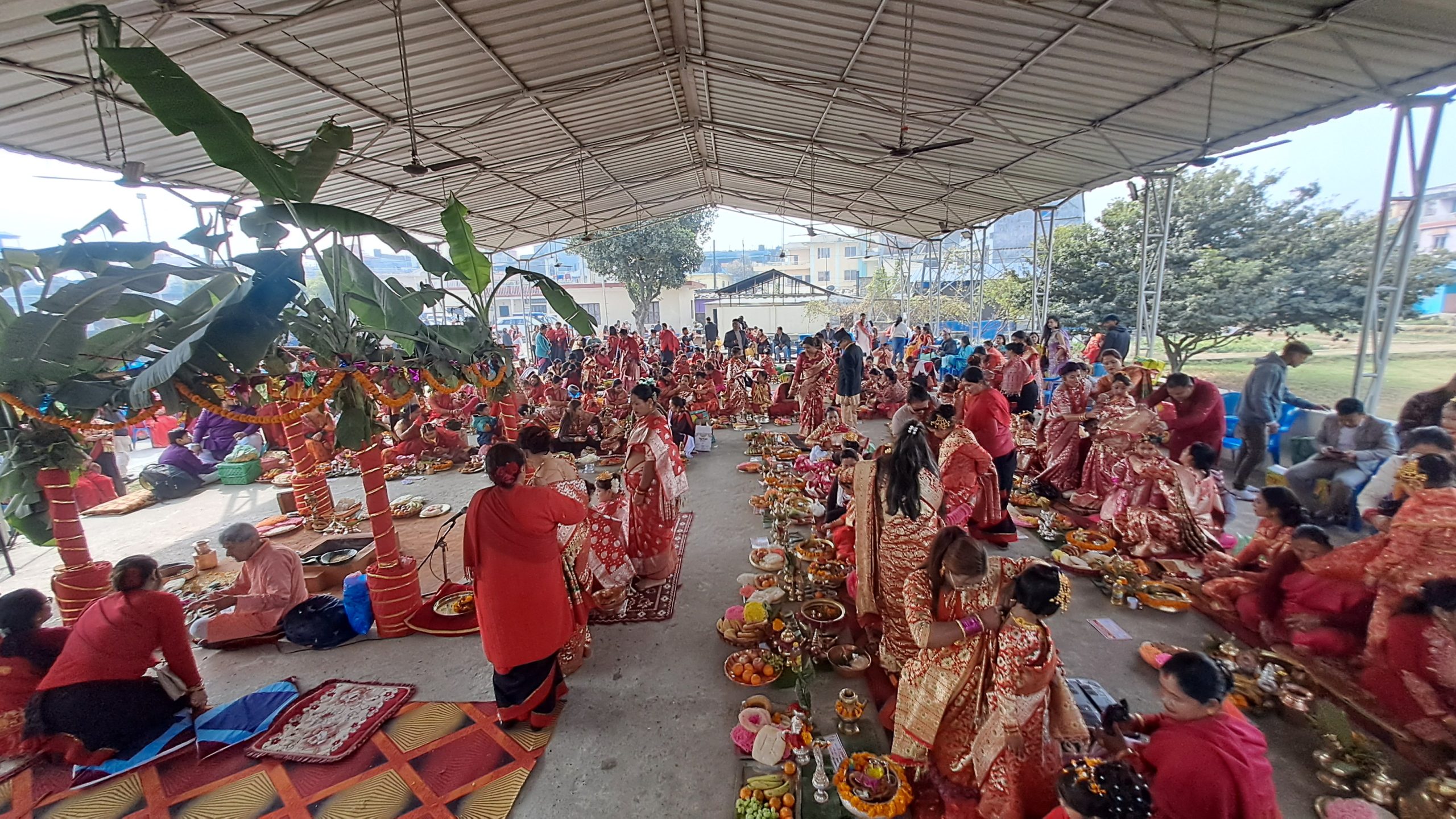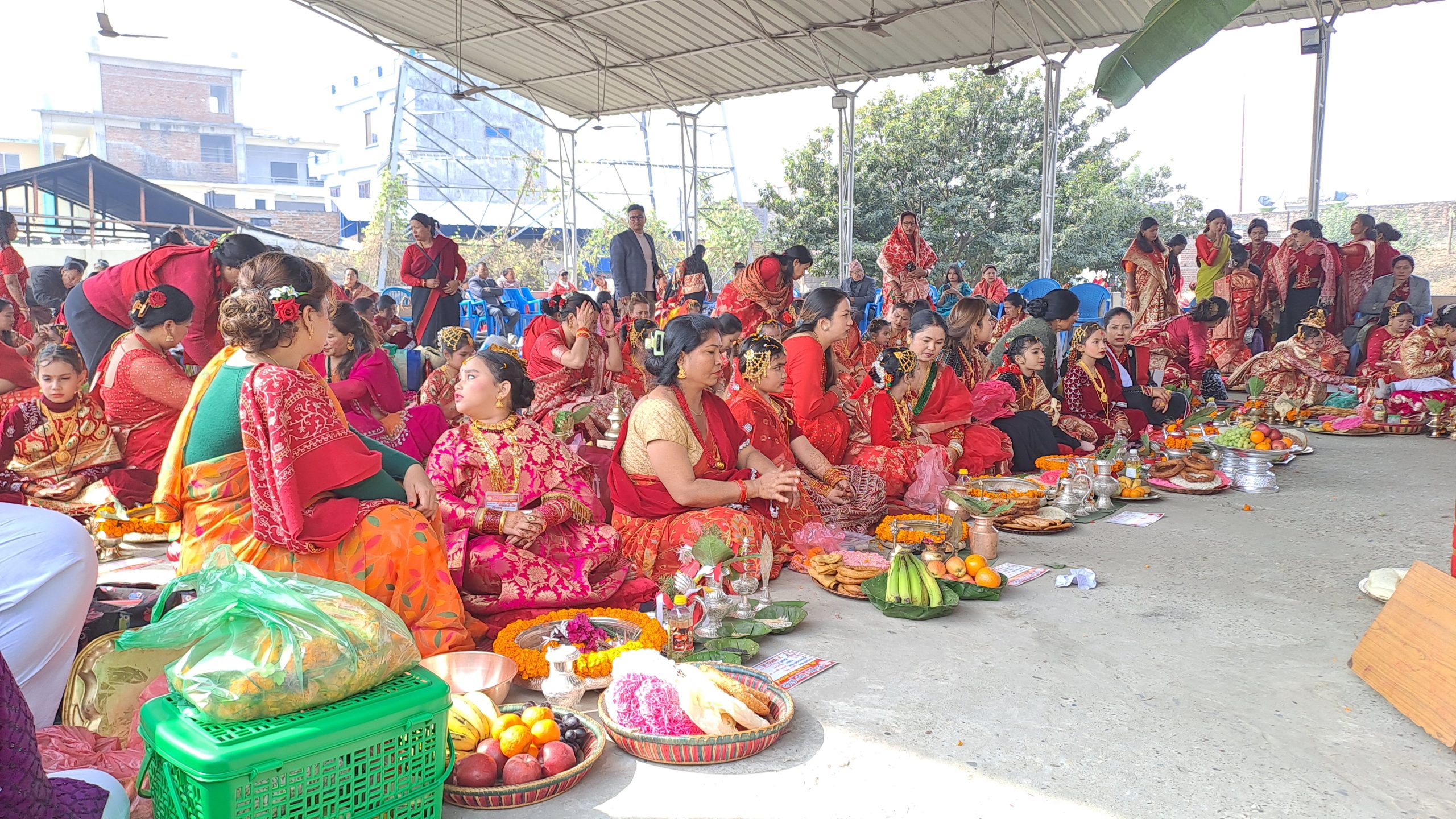 नेवारी पण्डित हरिशरण राजोपाध्याय र उनकी धर्मपत्नी पद्मा राजोपाध्यायद्वारा विधिविधानअनुसार पूजा–पाठ गराउँदै पहिलो दिनको कार्यक्रम सम्पन्न गरिएको समितिका सचिव लक्ष्मण श्रेष्ठले बताए।