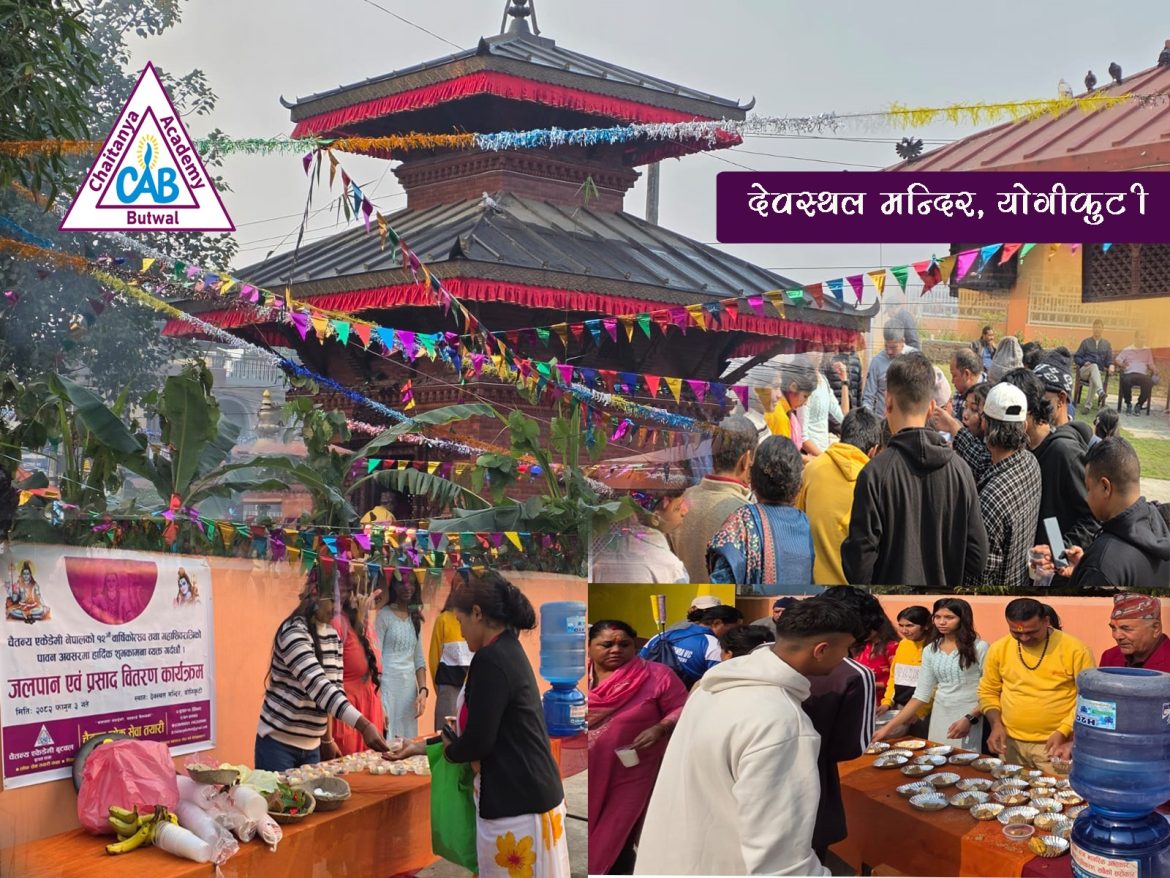 बुटवल ।चैतन्य एकेडेमी नेपालको बुटवल शाखाले महाशिवरात्रि तथा आफ्नो १२औँ वार्षिकोत्सवको अवसरमा भक्तजनहरूलाई जलपान एवं प्रसाद वितरण कार्यक्रम सम्पन्न गरेको छ।