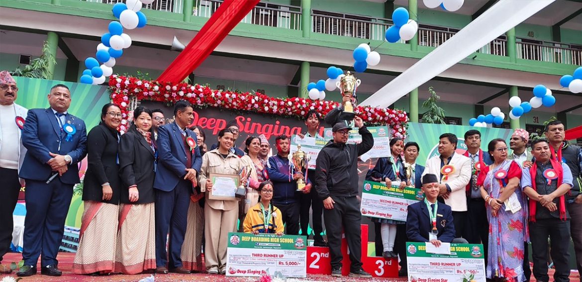 बुटवल । बुटवलस्थित दीप बोर्डिङ हाई स्कुलद्वारा आयोजित १३-औं संस्करणको ‘दीप गायन तारा’ प्रतियोगिताको उपाधि साकार शाहीले जितेका छन् । प्रारम्भिक चरणबाट छनोट भएका १७ जना उत्कृष्ट प्रतिस्पर्धीलाई पछि पार्दै न्यू होराइजन मावि बुटवलका छात्र शाही उपाधि जित्न सफल भएका हुन् ।