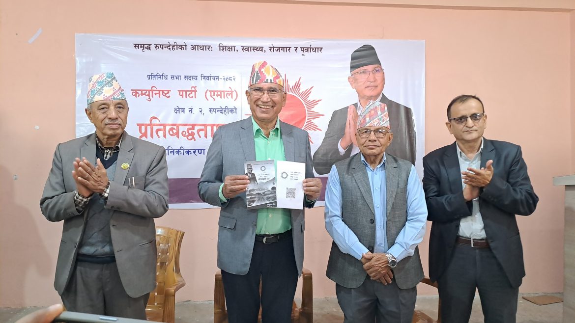 एमालेले प्रतिबद्धता पत्रमार्फत रुपन्देही निर्वाचन क्षेत्र नं। २ लाई शिक्षा, स्वास्थ्य, रोजगारी, उद्योग, पूर्वाधार र कृषि विकासको नमुना क्षेत्र बनाउने लक्ष्य लिएको जनाएको छ । पार्टीले यी कार्यक्रम कार्यान्वयनमार्फत समृद्ध, आधुनिक र आत्मनिर्भर समाज निर्माण गर्ने दाबी गरेको छ ।