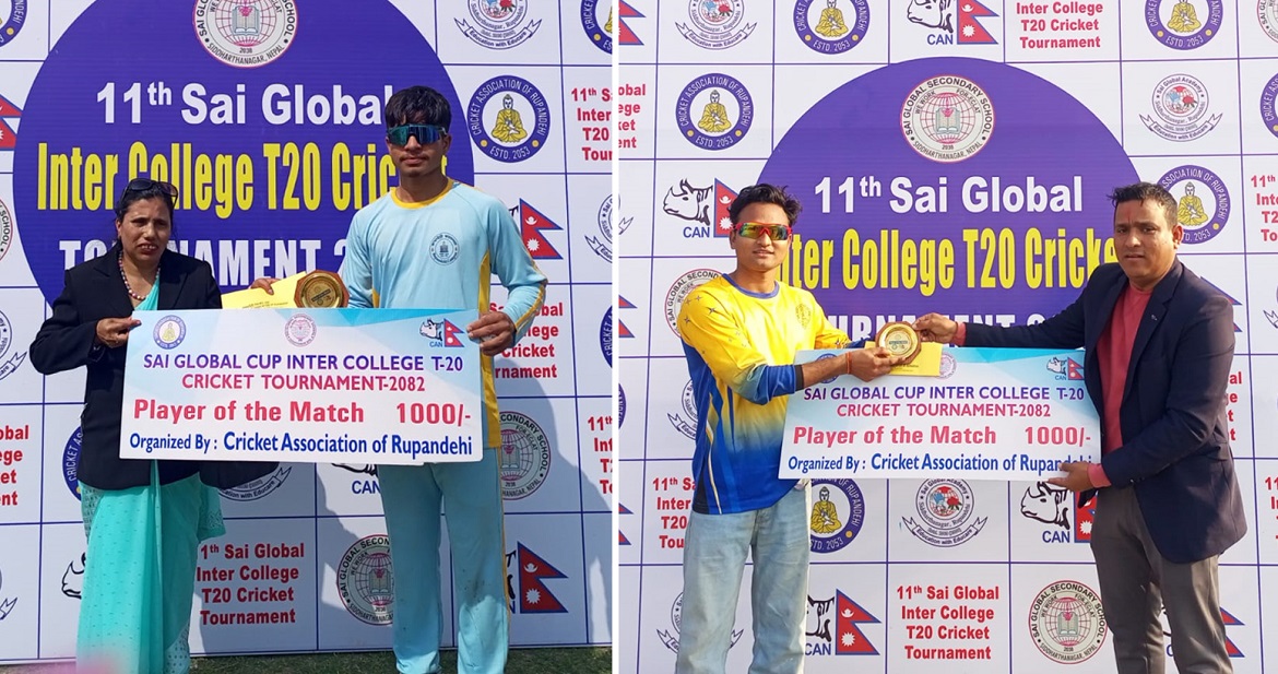 भैरहवा।रुपन्देही क्याम्पस र नविन औद्योगिकले ११औं संस्करणको जिल्लास्तरीय अन्तर कलेज साई ग्लोबल कप टी–२० क्रिकेट प्रतियोगितामा जित निकालेका छन् । शनिबार भएको खेलमा रुपन्देही क्याम्पसले सिद्धार्थ इन्टरनेशनललाई ९ विकेट र नविन औद्योगिकले न्यु लाइटलाई १ सय ४० रनले पराजित गर्दै जित हात पारेका हुन् ।