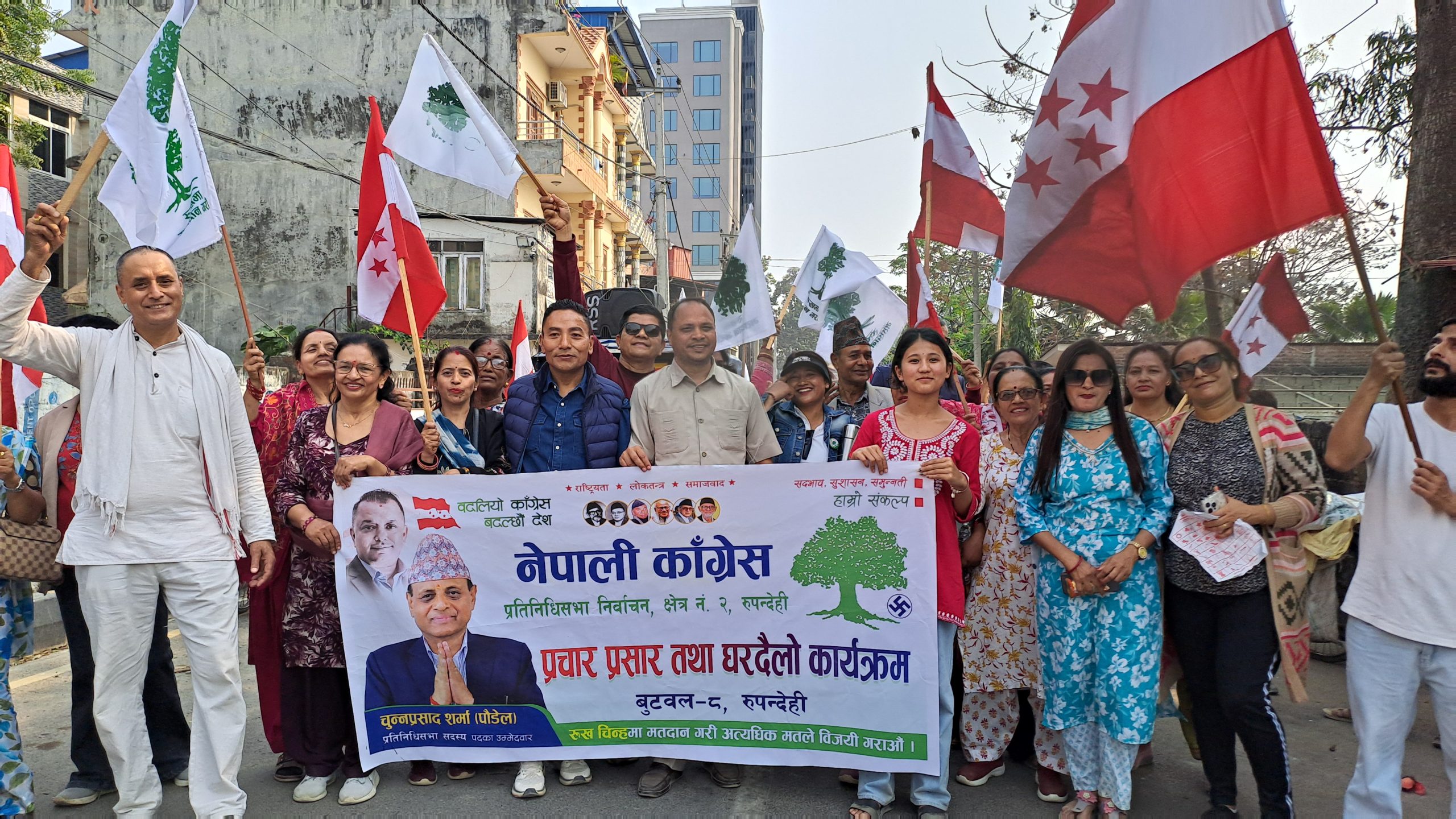 रुपन्देही क्षेत्र नं. २ बाट प्रतिनिधि सभा सदस्यका लागि नेपाली कांग्रेसका उम्मेदवार चुन्न प्रसाद शर्मा पौडेल र समानुपातिक उम्मेदवार रिता सेन ओलीले बुधबार नवौं दिनको घरदैलो अभियानलाई निरन्तरता दिएका छन् ।