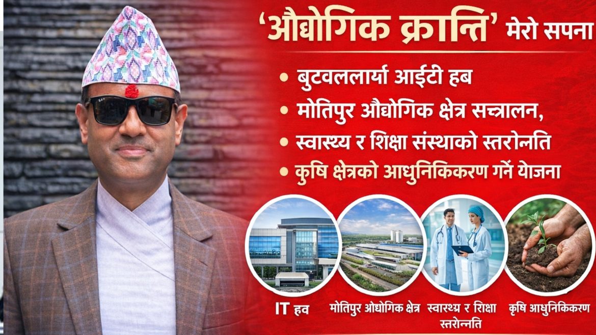 रुपन्देही–२ भौगोलिक, व्यापारिक र जनशक्तिको दृष्टिले ऐतिहासिक वयापारिक केन्द्र सहित अन्य ग्रामिण क्षेत्रहरु समेत समेटिएर बनेको अत्यन्तै सम्भावनायुक्त क्षेत्र हो । विशेषगरी बुटवल ऐतिहासिक रूपमा व्यापारिक सहरका रूपमा चिनिन्छ । अब यसलाई परम्परागत व्यापारबाट आधुनिक औद्योगिक र प्रविधि–आधारित अर्थतन्त्रमा रूपान्तरण गर्नुपर्छ । मुलुकको अर्थतन्त्रको आधार औद्योगिक विकास हो । औद्योगिक विकास विना आर्थिक समृद्धि सम्भव छैन । औद्योगिक क्रान्ति गर्न सकियो भने आयात रोक्न सकिन्छ, निर्यात गर्न पनि सकिन्छ । देशभित्रै रोजगारी सिर्जना हुन्छ । युवाजनशक्ति विदेश पलायन हुनु पर्दैन । औद्योगिक क्रान्ति मेरो सपना हो । त्यसकारण शिक्षण सेवा छाडेर व्यवसायमा प्रवेश गरेको हुँ । आफ्नो बलबुताले सकेसम्म देशमै केही गर्नुपर्छ भनेर नै उद्योगमा हात हाले । मेरो आफ्नो र परिवारको मात्रै गुजारा चलाउनको लागि यो सबै गर्नुपर्दैनथ्यो । देशमा केही गरौं, देशका लागि सकेको योगदान गरौं भनेर नै उद्योगमा हात हालेको हो । निजी क्षेत्रबाट आफूले सकेको गरेकै छु, तर अब यतीले मात्रै पुग्दैन । उद्योग व्यवसाय गर्नका लागि नीतिगत रुपमा झण्झट छ । त्यसलाई सुधार नगरेसम्म औद्योगिक विकासको वातावरण बन्नसक्दैन । यस कारण उद्योग गर्दा नीतिगत रुपमा काननी रुपमा कस्ता समस्या छन् भन्ने कुरा मैले राम्रोसंग बुझेको छ । समस्या बुझेको व्यक्ति नीति निर्माणको तहमा गयो भने सुधार गर्न पनि सकिन्छ भनेर नै मैले प्रतिनीधि सभामा जाने निर्णय लिएको छु । अव म यहाँको कुरा गछु । सबैभन्दा पहिले, बुटवल औद्योगिक क्षेत्रको विस्तार अपरिहार्य छ । यस क्षेत्रलाई नयाँ प्रविधि, हरित उद्योग र उत्पादनमूलक उद्यमसँग जोड्न आवश्यक छ । त्यसैगरी, वर्षौंदेखि चर्चामा रहेको मोतिपुर औद्योगिक क्षेत्रलाई शीघ्र सञ्चालनमा ल्याउन म विशेष पहल गर्नेछु । म बुटवललाई ‘आईटी हब’ का रूपमा विकास गर्न चाहन्छु । डिजिटल स्टार्टअप इन्क्युबेसन सेन्टर, टेक्नोलोजी पार्क, फ्री वाइफाइ जोन, सीसी क्यामेरा जडानसहितको सुरक्षित सहर अभियान, र डिजिटल सीपमूलक तालिम कार्यक्रम सञ्चालन गरिनेछ । युवा जनशक्तिलाई सूचना–प्रविधिमा दक्ष बनाउँदै रोजगारी सिर्जना गर्नु आजको आवश्यकता हो । आईटी, बैंकिङ, बीमा, उद्योग र व्यापारलाई एउटै आर्थिक इकोसिस्टममा जोडेर बुटवललाई पश्चिम नेपालको आर्थिक केन्द्रका रूपमा स्थापित गर्ने मेरो लक्ष्य हो ।