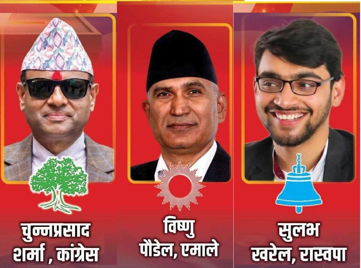 अव यी दलहरुका घोषणा पत्रमा उल्लेख गरेका बाचाहरुलाई छाडेर हामी धरातलमा उत्रने हो भने अहिलेको चुनावमा रुपन्देही क्षेत्र न २ का मुख्य प्रतिष्प्रधि भनेका उम्मेदवारका रुपमा पुर्व मन्त्री तथा नेकपा एमालेका उपाध्यक्ष बिष्णु पौडेल, ब्यवसायी चुन्नप्रसाद शर्मा पौडेल र अधिबक्ता शुलभ खरेल नै हुन् भने दलका हिसावले उनीहरु क्रमशः नेपाल कम्युनिष्ट पार्टी एमाले, नेपाली कांग्रेस र राष्ट्रीय स्वतन्त्र पार्टीवाट प्रतिनिधित्व गरेका छन् ।