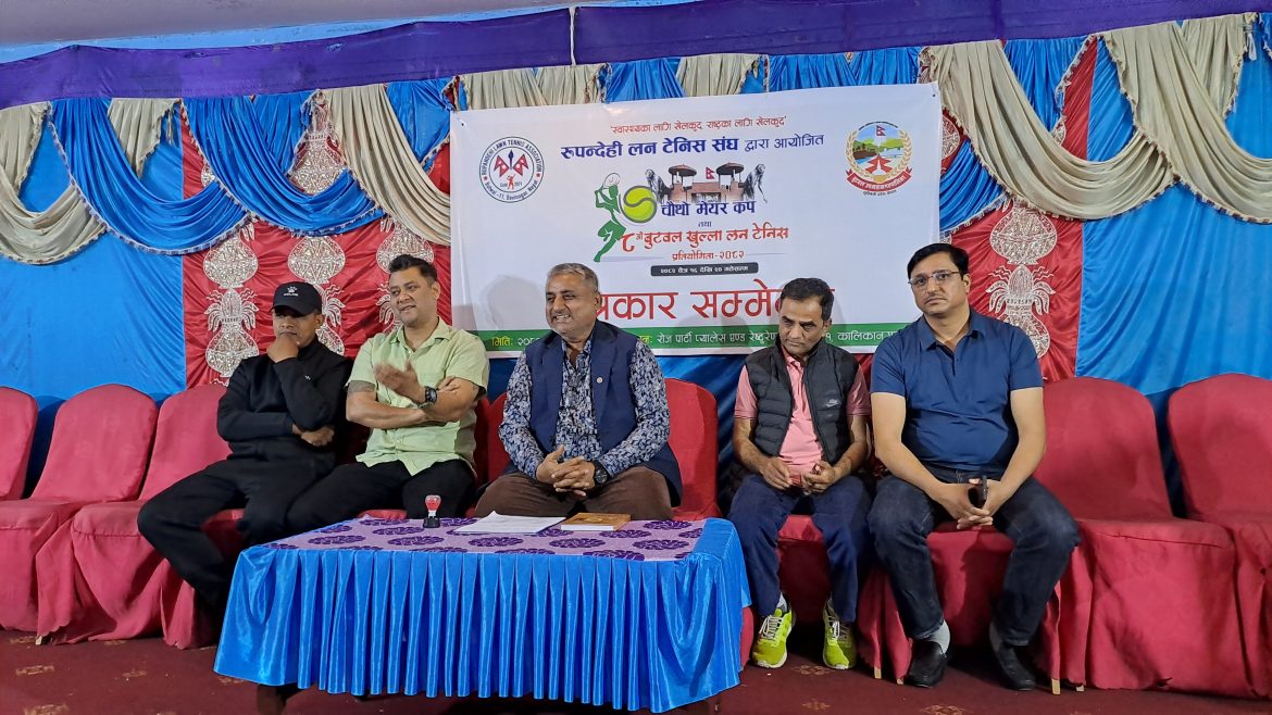 बुटवल । रूपन्देही लन टेनिस संघको आयोजनामा चैत १६ गतेदेखि बुटवलमा आठौं बुटवल राष्ट्रिय खुला लन टेनिस तथा चौथो मेयर कप प्रतियोगिता सञ्चालन हुने भएको छ । संघले शुक्रबार बुटवलमा पत्रकार सम्मेलन गर्दै प्रतियोगिताबारे जानकारी दिएको हो ।