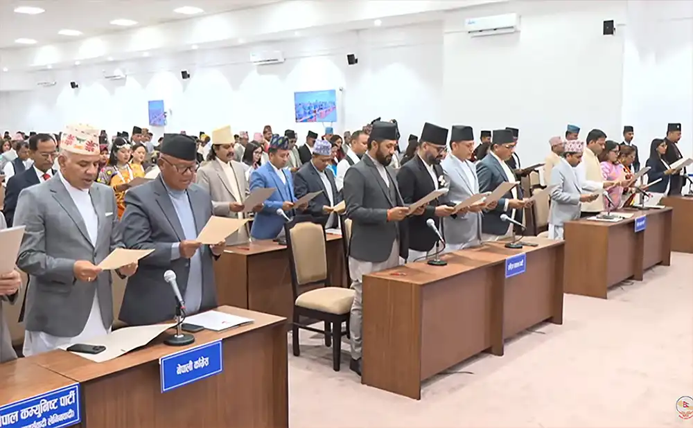 शपथ ग्रहण लिन सांसदहरुलाई औपचारिक र आफ्नो सांस्कृतिक पहिचानको पोसाकमा उपस्थिति भएका थिए ।