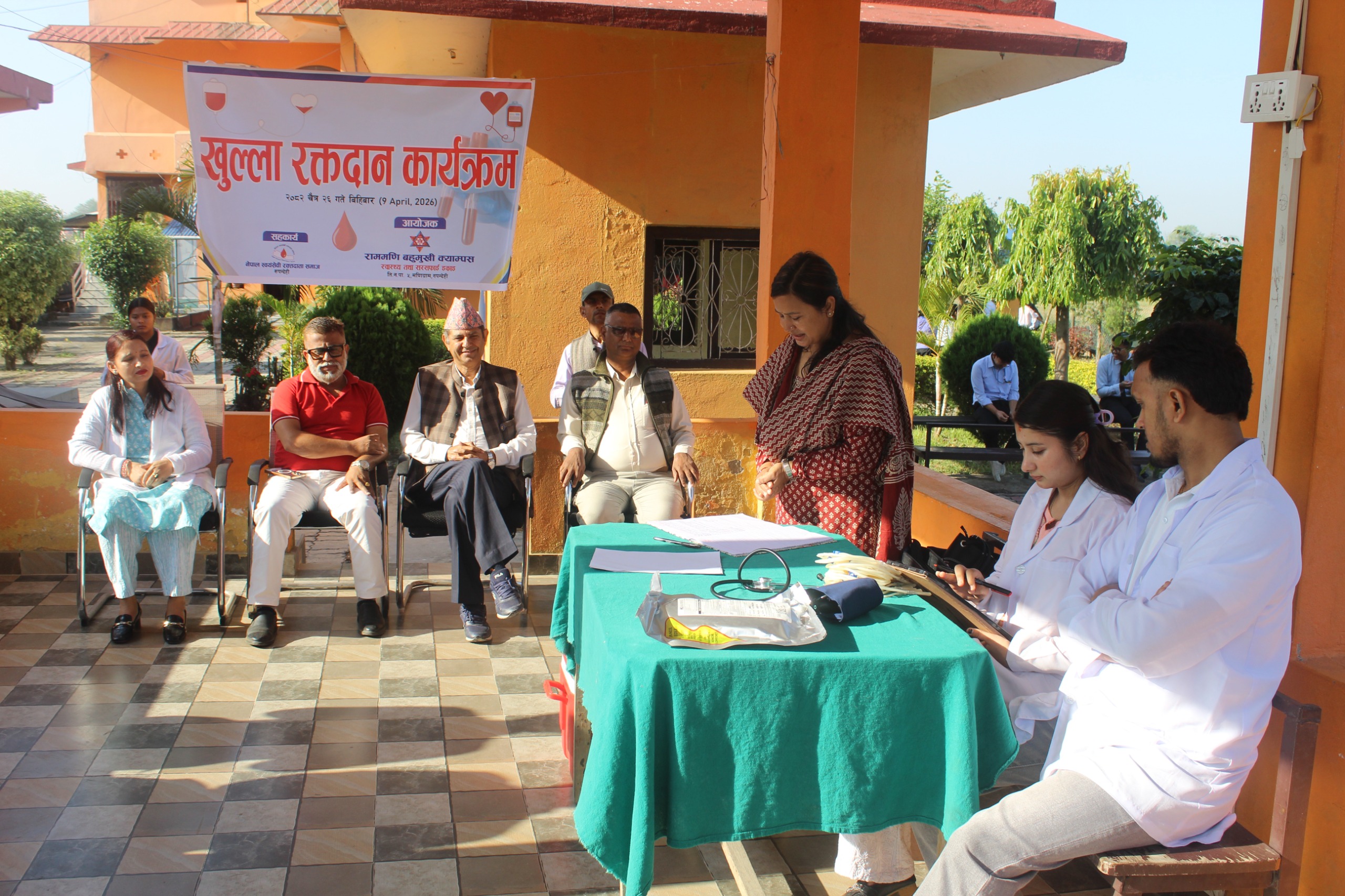 क्याम्पसका सहायक प्राध्यापक कविता पन्थीको सञ्चालनमा आयोजित कार्यक्रममा रक्तसञ्चार सेवा केन्द्र बुटवलका प्राविधिकहरू प्रदीप खत्री, दीपक पोखरेल र सीमा दंगालले प्राविधिक संयोजन गर्नुभएको थियो।