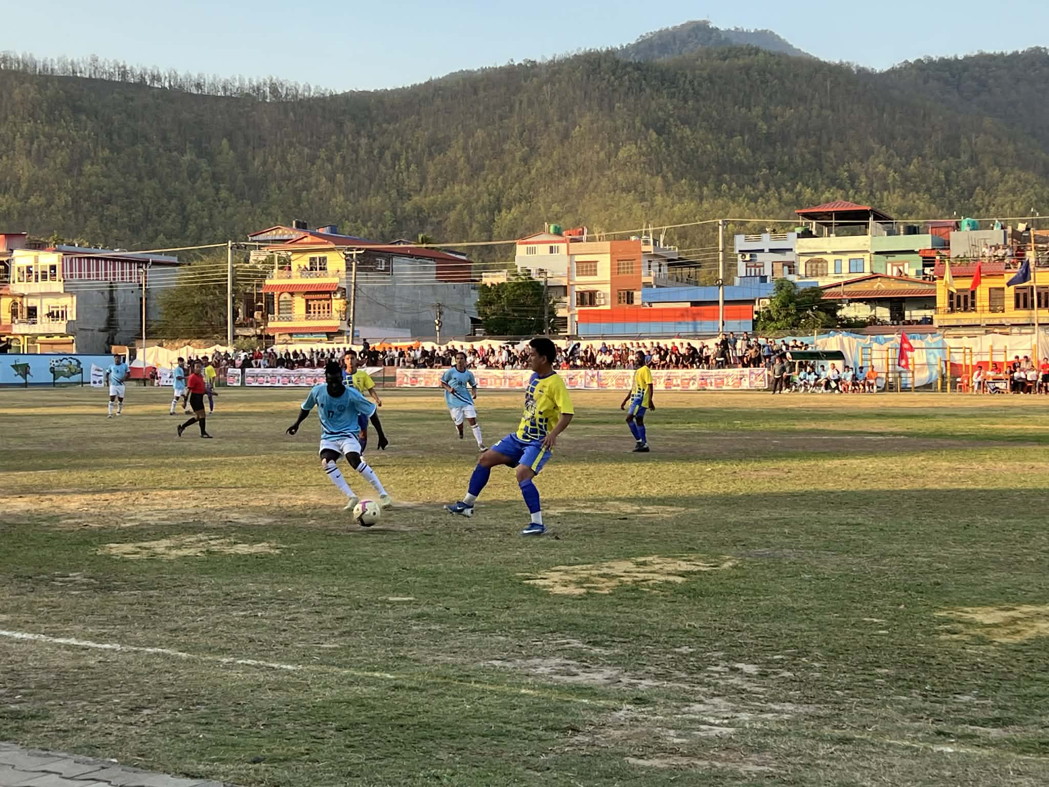 यसैगरी अन्तिम क्वाटरफाइनलमा झरना स्पोर्टिङ क्लब र आयोजक सौभाग्य युवा क्लबबीचको खेल पनि निकै प्रतिस्पर्धात्मक रह्यो। झरनाका रिजन क्षेत्रीले १९औँ मिनेटमा गोल गर्दै टोलीलाई अग्रता दिलाएका थिए भने आयोजकका अभय योमीले ३१औँ मिनेटमा बराबरी गोल फर्काए। निर्धारित समयमा थप गोल हुन नसकेपछि खेल ट्राइब्रेकरमा पुगेको थियो, जहाँ झरना विजयी भयो।