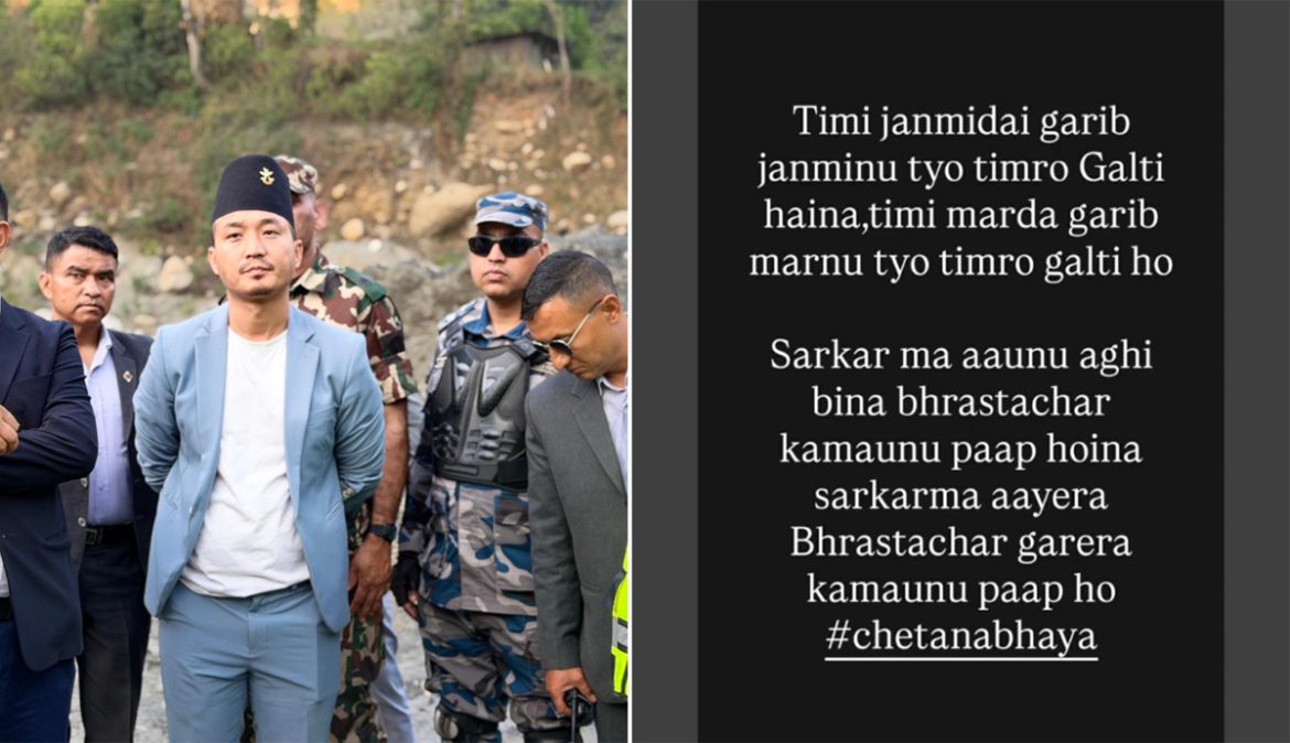 सामाजिक सञ्जाल इन्स्टाग्रामको स्टोरीमा उनले यस्तो भनाइ सार्वजनिक गरेका हुन् । गुरुङले गरिब जन्मिनु गल्ती नभए पनि गरिब नै भएर मर्नु चाहिँ गल्ती हुने पनि बताएका छन् ।