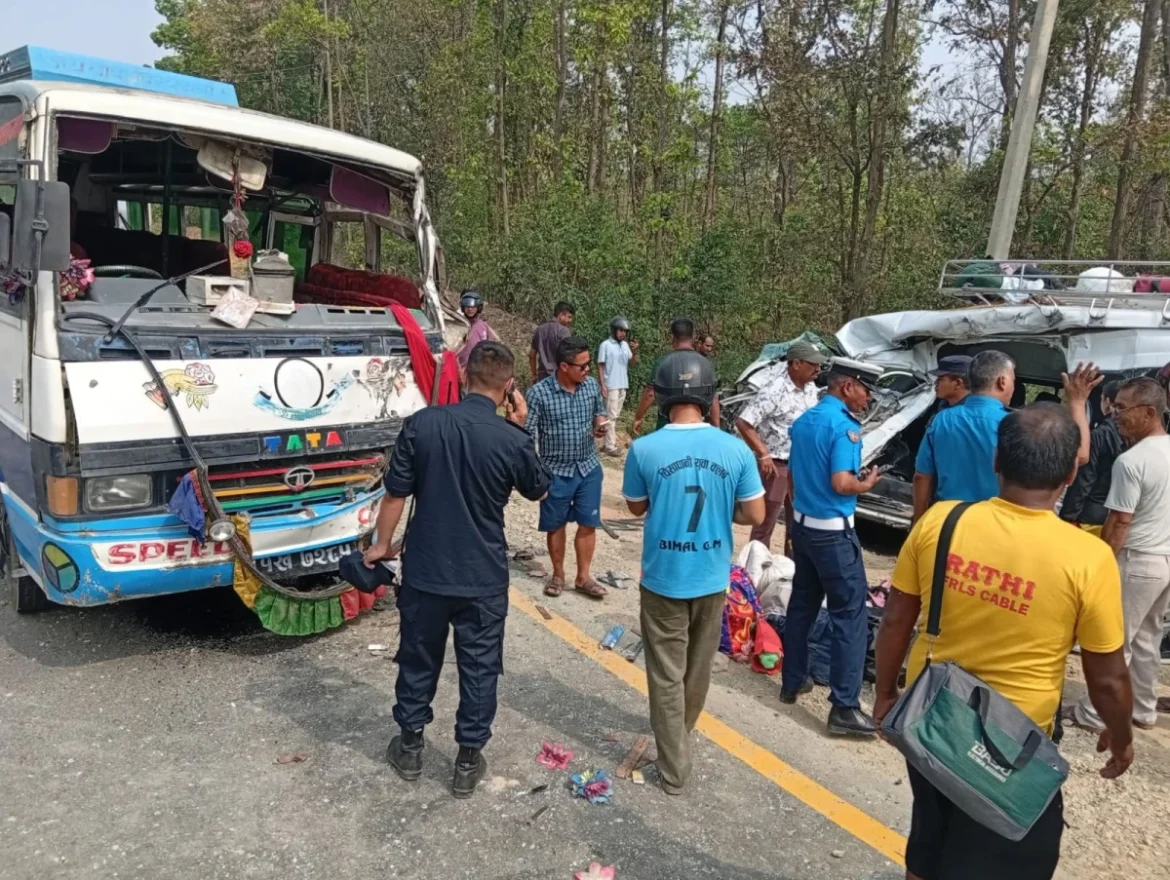 प्रहरीका अनुसार बुटवलबाट बर्दघाट जाँदै गरेको लु १ ख ७२८५ नम्बरको माइक्रोबस र नारायणगढबाट बुटवलतर्फ आउँदै गरेको बा.प्र–०१००६ ख ८९२६ नम्बरको ईभी माइक्रो बिहान करिब ९:३० बजे एकआपसमा ठोक्किँदा दुर्घटना भएको हो।