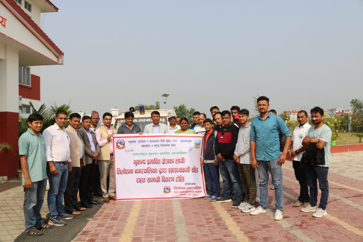 तिलोत्तमा नगरपालिकाले भुकम्प प्रभावित क्षेत्रमा पठायो स्वास्थ्यकर्मी र औषधी सहितको सहायता सामाग्री ः १० लाख आर्थिक सहायता दिने