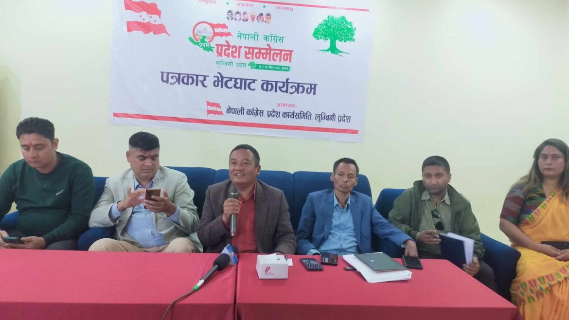 बुटवल । यहि मंसिर १६ गते देखि बुटवलमा नेपाली काँग्रेस लुम्बिनी प्रदेशको प्रथम सम्मेलन हुने भएको छ । नेपाली कांग्रेस लुम्बिनी प्रदेश समितिले बुटवलमा पत्रकार सम्मेलनको आयोजना गरी प्रदेश सम्मेलन गर्न लागेको जानाकारी दिएको हो । २ दिन सम्म चल्ने सम्मेलन बुटवलको अन्तर्राष्ट्रिय सम्मेलन केन्द्रमा हुने नेपाली कांग्रेस लुम्बिनी प्रदेश सभापती अमरसिंह पुनले बताए ।