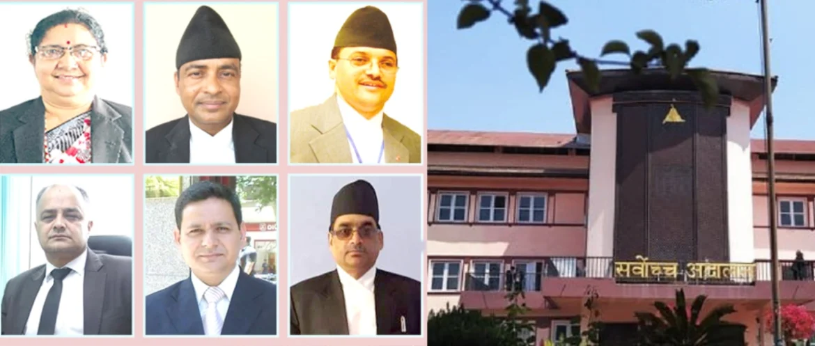 सारंगा सुवेदी, अब्दुल अजिज मुसलमान, महेश शर्मा पौडेल, टेकप्रसाद ढुंगाना, सुनिलकुमार पोखरेल र बालकृष्ण ढकाल नियुक्त भएका हुन् । संसदीय सुनुवाइ समितिले बुधबार नै ६ जना न्यायाधीशको नाम सर्वोच्चमा अनुमोदन गरेको थियो । न्याय परिषदको सिफारिस अनुसार नै सर्वोच्च अदालतमा रिक्त पदमा न्यायाधीश नियुक्त भएको हो ।