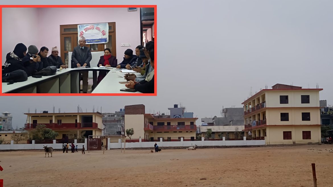 कार्यक्रममा विद्यालयका अध्यक्ष जित बहादुर मल्लले शहरभित्रकै पिछडिएको वडामा बिस २०५४ सालमा स्थापना भएको विद्यालय शैक्षिक योगदान दिदै आएको बताए । श्रमिक, गरिब, जनजातीहरुका छोराछोरीहरुलाई शिक्षा दिदै आएको विद्यालय नगरको पहुचमा पुग्न नसकेको अवस्थामा पनि स्थानिय शिक्षाप्रेमीहरुको अगुवाईमा भौतिक र शैक्षिक विकास हुँदै आएको उनले बताए । विद्यालयमा शैक्षिक विकासमा योगदान दिने अक्षयकोष दाता, शिक्षकहरुलाई सम्मानको कार्यक्रम समेत राखिएको उनले बताए । बिस २०७२ सालमा भकम्पबाट प्रभावित विद्यालय पुर्ननिर्माण गर्न नसकिएको उनले बताए। सरकारको दृष्टिकोण सामुदायिक विद्यालयमम केवल १० प्रतिशत रकम बजेट पर्याप्त नभएको उनले बताए । विद्यालयले पहिलोपटक प्रगति माबि स्मारिका प्रकाशन गर्न लागिएको उनले बताए ।
