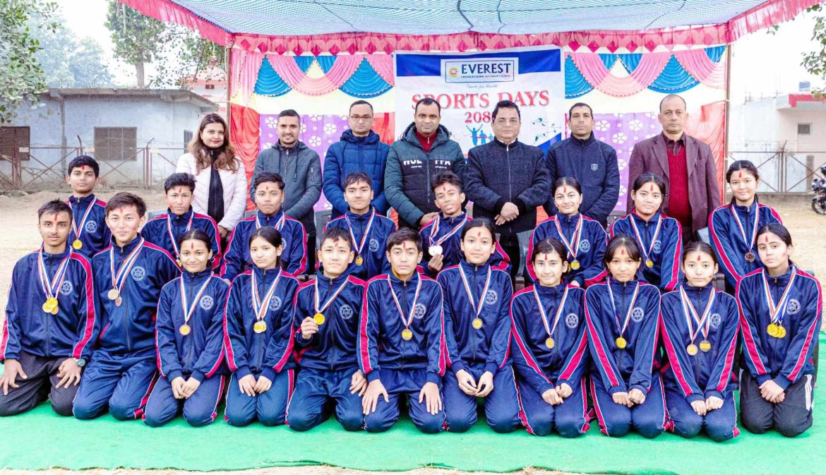 बुटवल। बुटवल–८, सुख्खानगरस्थित एभरेष्ट इङलिस बोर्डिङ मा.वि.मा खेलकुद दिवस सम्पन्न भएको छ । विद्यार्थीहरुको शारीरिक, मानसिक तथा बौद्विक विकासका साथै उनीहरुमा आपसी सहकार्य, साथीत्व र एकताको विकास गर्ने उद्देश्यले हरेक वर्षजस्तै यस वर्ष पनि खेलकुद दिवस कार्यक्रम सम्पन्न भएको हो । माघ ३ र ४ गते सञ्चालन भएकोे यस कार्यक्रममा कक्षा नर्सरीदेखि १२ कक्षासम्मका करिब एक हजार एक सय विद्यार्थीहरुले सहभागिता जनाएका थिए ।