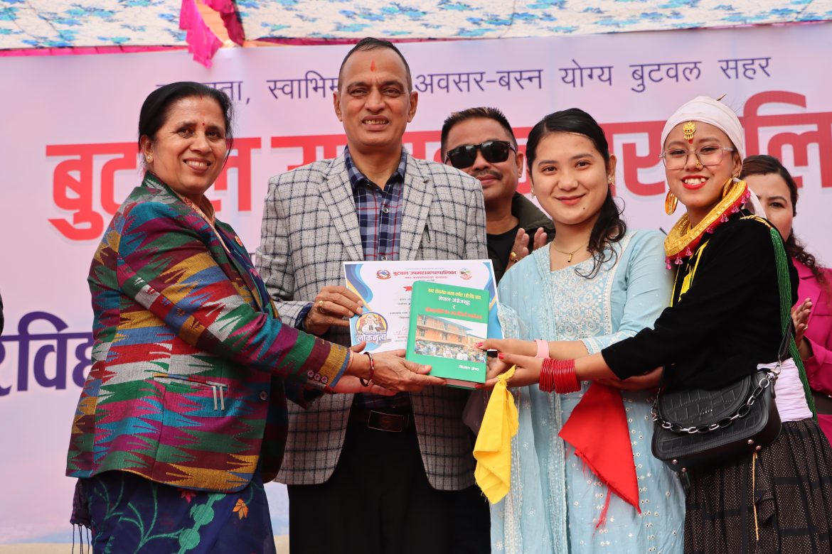 बुटवल।बुटवल उपमहानगरपालिकाले सरस्वती पूजाको अवसरमा बुटवलभित्रका विद्यालयहरुलाई पुस्तक उपहार दिएको छ। बुटवल उपमहानगरपालिकाको ६५औ स्थापना दिवसमा आयोजित लोकनृत्य प्रतियोगिताकै अवसरमा नगर प्रमुख खेलराज पाण्डेय र उपप्रमुख सावित्रादेवी अर्यालले नेपाल-अंग्रेज युद्धसम्बन्धि निर्मल श्रेष्ठले लेखेको पुस्तक उपहार दिएका हुन्।