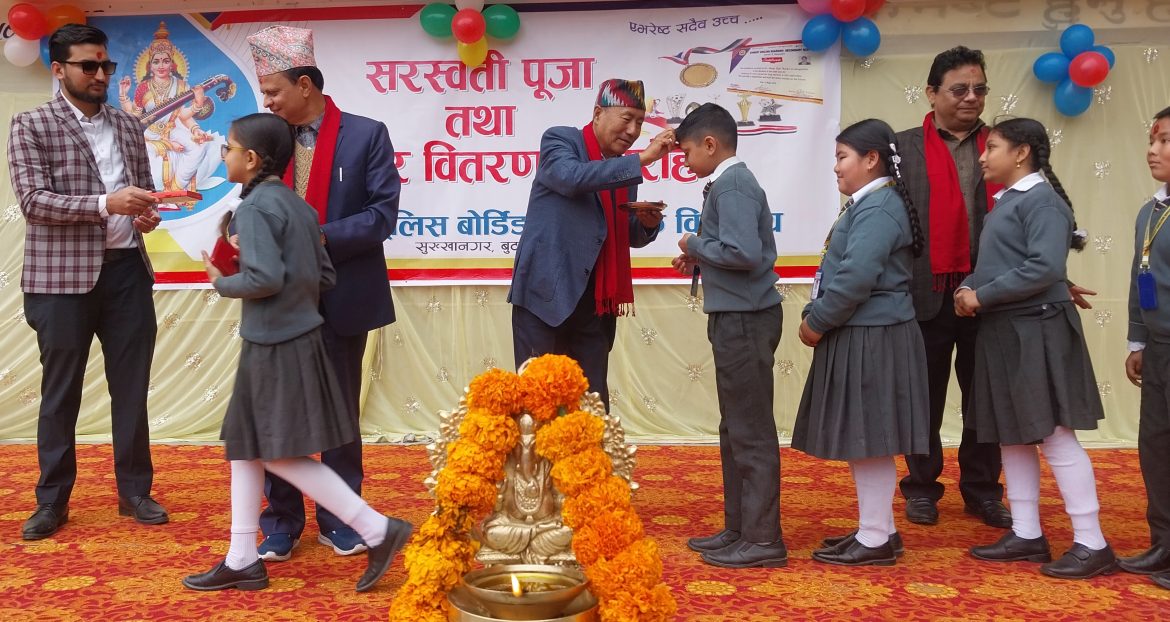 विद्यालय संचालक समितिका अध्यक्ष गमप्रसाद रेश्मीको अध्यक्षतामा भएको कार्यक्रममा राष्ट्रिय परिक्षा बोर्ड प्रदेश कार्यालयका प्रमुख रमाकान्त तिवारीले शैक्षिक उत्कृष्टता हासिल गरेका विद्यार्थीलाई बधाई तथा शुभकामना दिदै गुणस्तरीय शिक्षण सिकाईका लागि शिक्षक, अभिभावक र विद्यार्थी विचमा सहकार्य आवश्यक रहेको बताउनुभयो । उहाँले शिक्षामा गुणस्तरीयतासँगै, काम लाग्ने, ब्यहाहिर, सीपमुलक र संस्कारयुक्त शिक्षा अहिलेको आवश्यकता रहेकाले सोही अनुसार अध्यापनको बातावरण विद्यालयले मिलाउनु पर्ने बताउनुभयो । कार्यक्रममा विद्यालय संचालक समितिका उपाध्यक्ष भिमबहादुर श्रेष्ठ, प्राचार्य कृष्ण न्यौपाने, सहप्राचार्य भिमसेन गौतम, उपप्राचार्य उमेश रेग्मी लगायतले सफल विद्यार्थीलाई बधाई तथा शुभकामना दिनु भएको थियो । सो अवसरमा विद्यालयका दिर्घ सेवा गर्ने झण्डै एक दर्जन शिक्षक तथा महिला शिक्षकहरुलाई सम्मान गरिएको थियो ।
