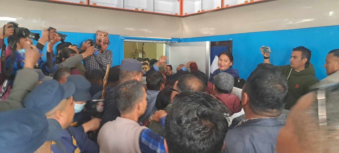 जनप्रतिनीधिहरुले नगरप्रमुख र प्रमुख प्रशासकीय अधिकृतको कार्यकक्षमा ताला लगाउँदा प्रहरी प्रशासन र जनप्रतिनीधि विच धकेलाधकेल भएको थियो ।