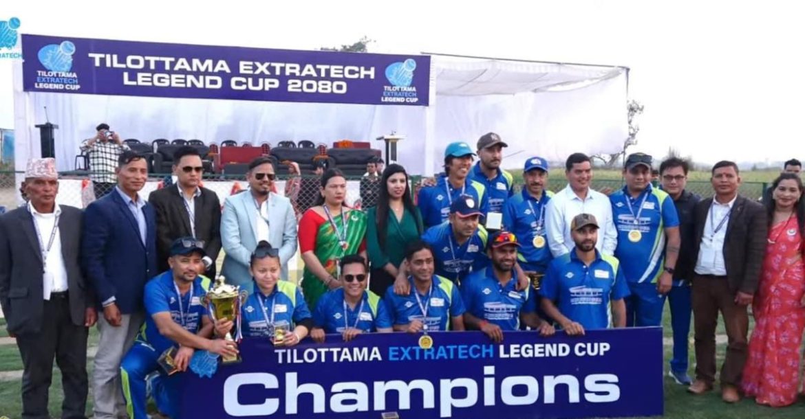 पारस खड्का नेतृत्वको २०१४ विश्वकप लिजेन्ड्सले रुपन्देहीको तिलोत्तमामा निर्माण गरिएको एक्स्ट्राटेक ओभल क्रिकेट मैदानमा जारी ‘एक्स्ट्राटेक लिजेन्ड कप’ को उपाधि जितेको छ ।