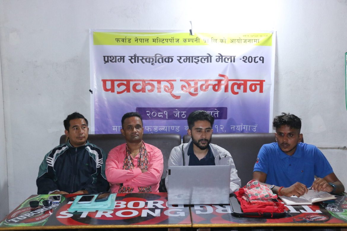 बुटवल। बुटवल–१२ नयाँगाउँमा भोलि ३ गते देखि प्रथम साँस्कृतिक रमाइलो मेला–२०८१ सुरु हुने भएको छ । फर्वाड नेपाल मल्टिप्रपोज कम्पनी प्रालिले नयाँगाउँस्थित भार्सेली टोलमा मेला आयोजना गरेको हो । बुधबार आयोजित पत्रकार सम्मेलनमा प्रालिका अध्यक्ष गोविन्द भुसालले मेलाको सम्पूर्ण तयारी पुरा भएको जानकारी दिए ।