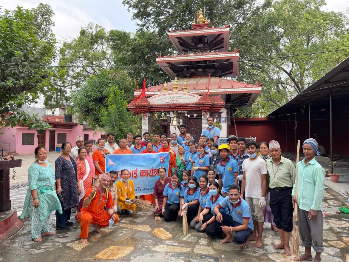 मानव धर्म सेवा समिति लुम्बिनी क्षेत्र आश्रमद्वारा बुटवल-६ कालिका मन्दिरमा सरसफाइ