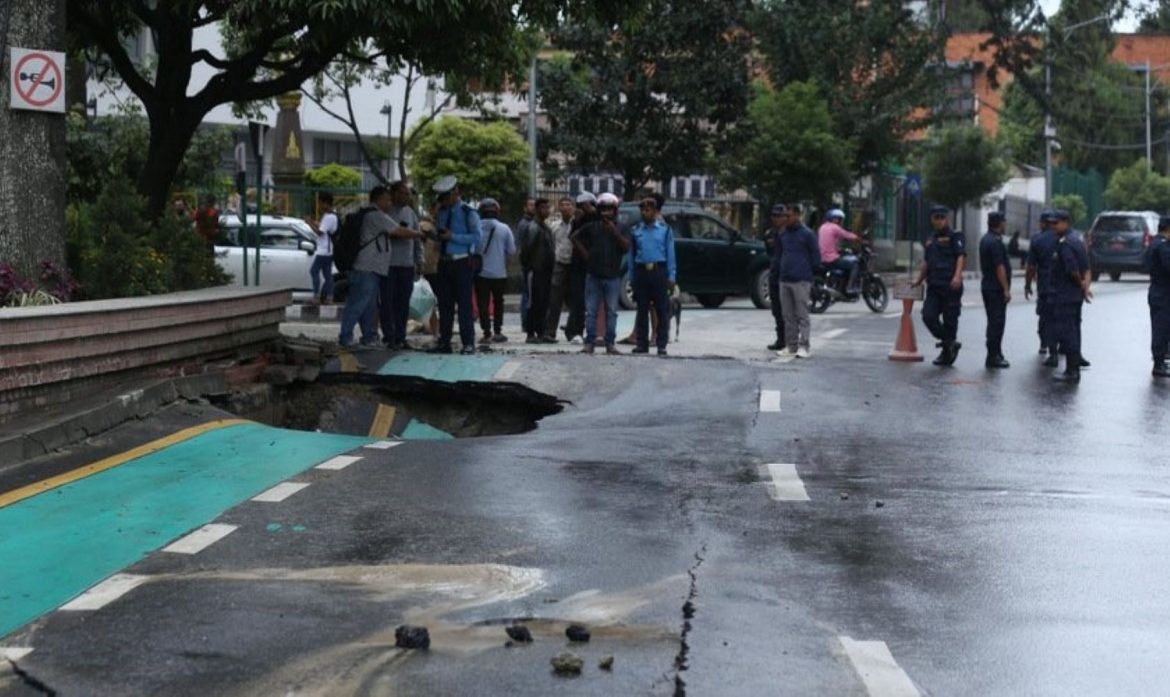 ललितपुर । ललितपुरको कुपण्डोलमा सडकको बीच भाग नै भासिएको छ । भासिएको सडकबाट ठूलो पानी निस्किएको छ । कुपण्डोलबाट पुल्चोतर्फ जाँदा होटल हिमालय अगाडिको सडक फुटेर पानी निस्केको हो । सडकबाट पानी निस्कँदा गाडी, मोटरसाइकल चालक र सडक छेउका व्यापारीहरुलाई समस्या भएको छ ।