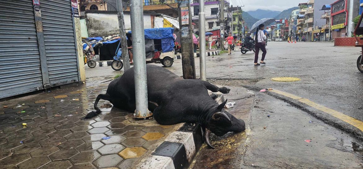 बुटवल । सडक बत्तीको पोलमा करेन्ट लागेर बुटवलमा छाडा चौपाया (साँढे)ले ज्यान गुमाएको छ । बुटवल तीनकुनेस्थित फुटपाथमा रहेको सडकबत्तीको पोलमा असुरक्षित तरिकाले वायरिङ गर्दा चौपायालाई करेन्ट लागेको स्थानीयको भनाई छ । निरन्तर वर्षा भइरहेको बुटवलमा शनिबार विहान उक्त घटना भएको हो ।