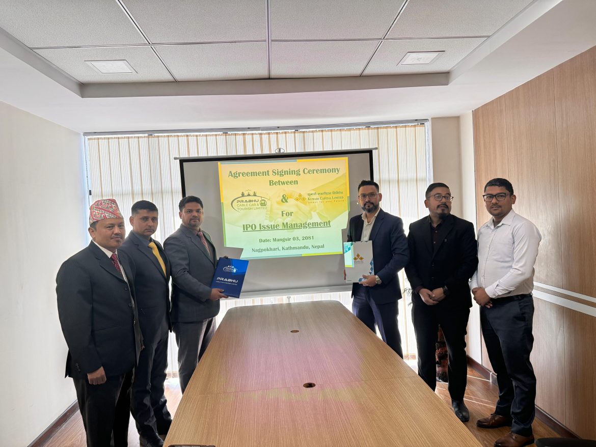 बुटवल ।प्रभु ग्रुप्स एण्ड कम्पनीज अन्र्तगतका प्रभु ऊर्जा कृषि पर्यटन विकास लिमिटेड, प्रभु होल्डिङ्गस् एण्ड हाईड्रो डेभलपमेन्ट कम्पनी लिमिटेड, हाईड्रो होल्डिङ्गस् एण्ड पावर डेभलपमेन्ट कम्पनी लिमिटेड, प्रभु स्टिल्स एण्ड हाईड्रो ईक्युपमेन्ट इण्डस्ट्रिज लिमिटेड गरी ४ वटा कम्पनीको मुख्य लगानीमा स्थापित प्रभु केवलकार एण्ड टुरिजम लिमिटेड र कुमारी क्यापिटल बीच शेयर निश्कासन गर्न सम्र्पूण कार्य गर्ने गरी सम्झौता भएको छ । यो सम्झौता भएसँगै प्रभु केवलकारको ३० करोड रुपैंयाँ बराबरको आईपिओ निश्कासन गर्ने कार्य अगाडी बढेको छ ।