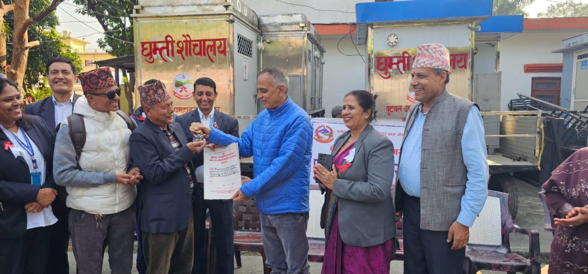 आइतबार आयोजित एक कार्यक्रममा बुटवल उपमहानगरपालिकाले घुम्ती शौचालयहरूको व्यवस्थापन र सञ्चालनको जिम्मा बुटवल सेनेटरी प्रालिलाई हस्तान्तरण गरेको छ। सम्झौता अनुसार शौचालयहरूको चाबी पनि प्रालिलाई हस्तान्तरण गरिएको छ।