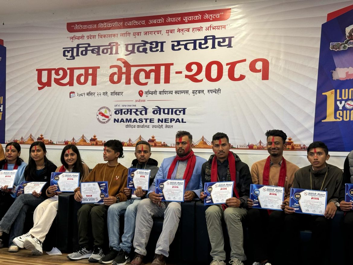 बुटवल।नमस्ते नेपालको आयोजनामा लुम्बिनी प्रदेशस्तरीय पहिलो भेला सम्पन्न भएको छ। भेलामा प्रमुख अतिथि प्रतिनिधि सभा सदस्य बासुदेव घिमिरेले संगठनलाई समाजमा पहिचान देखिने गरी प्रभावकारी काम गर्न निर्देशन दिए। उनले विशेष गरी लैंगिक विभेदविरुद्ध र वातावरण सरसफाइमा केन्द्रित भई काम गर्न सुझाव दिंदै, स्थानीय तहहरूसँग सहकार्यमा समाजमा परिवर्तन ल्याउने कार्यमा जोड दिनुपर्ने बताए।