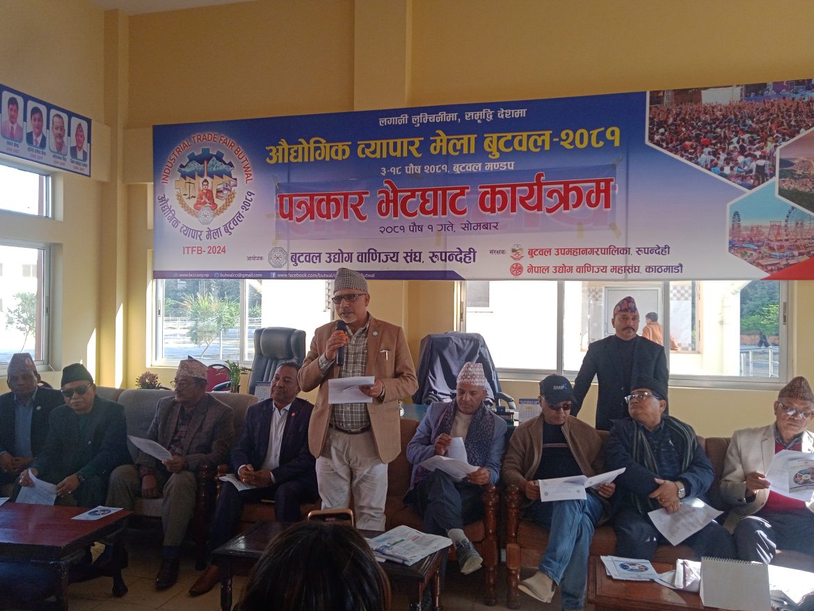 ‘लगानी लुम्बिनीमा, समृद्धि देशमा’ भन्ने मुल नारा सहित आयोजना गरिएको मेलाको तयारी पूरा भएको आयोजक बुटवल उद्योग वाणिव्य संघ रुपन्देहीले सोमबार मेला सचिवालयमा पत्रकार सम्मेलन गरि जानकारी गराएको हो । २०४१ सालमा उपत्यका बाहिर पहिलो पटक बुटवलमा औद्योगिक प्रदर्शनी गरेको बुटवल उद्योग वाणिज्य संघले आयोजना गरेको यो २४ औं संस्करणको औद्योगिक व्यापार मेला हो ।