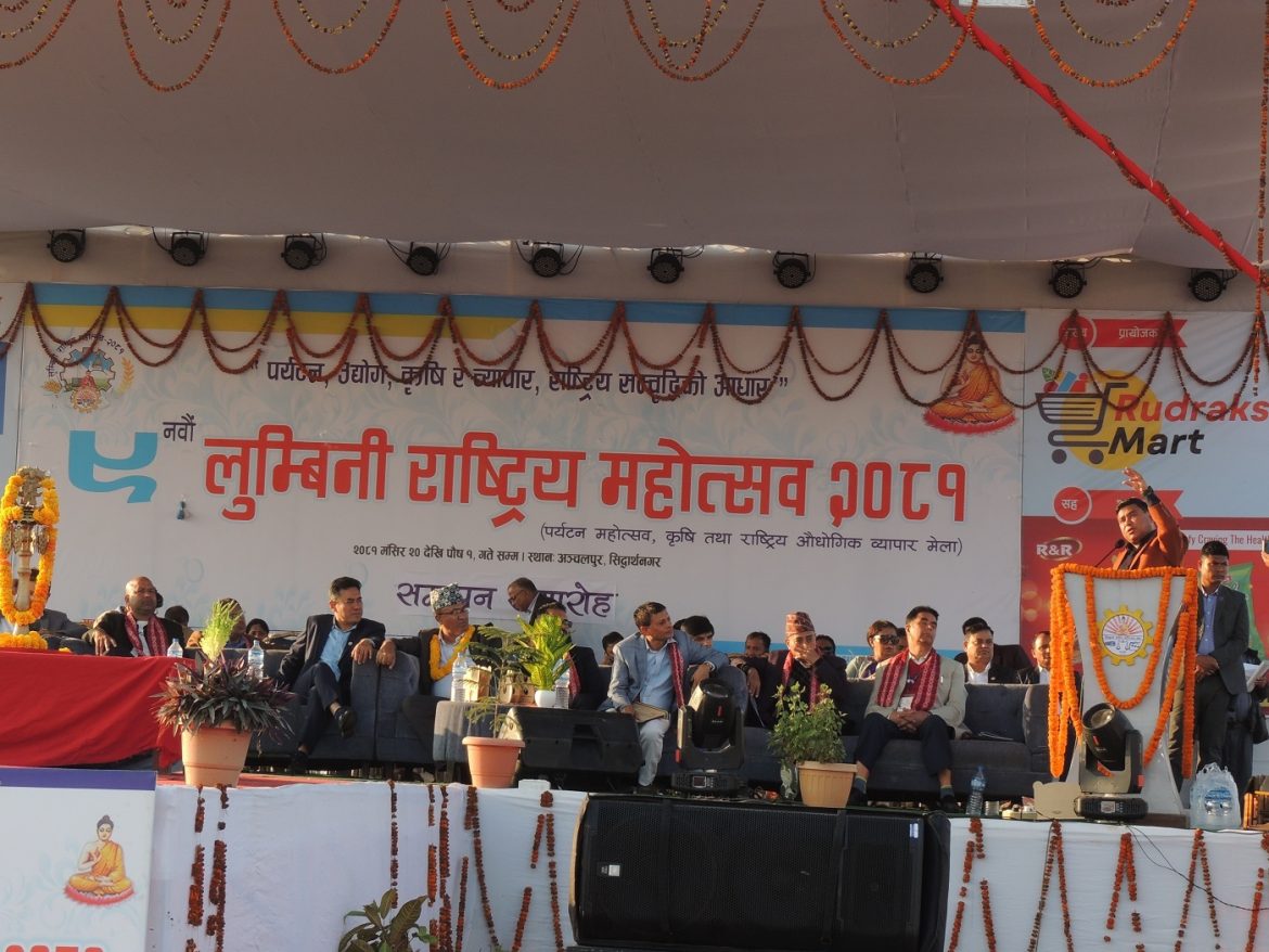 भैरहवा।रुपन्देहीको भैरहवामा आयोजित नवौं लुम्बिनी राष्ट्रिय महोत्सवमा सम्पन्न भएको छ । सुस्ताएको अर्थतन्त्र र बजारलाई चलायमान बनाउने उद्देश्यसहित सिद्धार्थ उद्योग बाणिज्य संघ, रुपन्देहीको आयोजना मंसिर २० देखि पुस १ गतेसम्म १२ दिनसम्म महोत्सव संचालन भएको थियो । महोत्सवमा क्रेता–विक्रेताबीच प्रत्यक्ष भेटघाट भएको र यसले उद्योगी–व्यवसायी र उपभोक्ताबीचको सामिप्यतालाई अझै प्रगाढ बनाएको आयोजकले जनाएका छन् ।