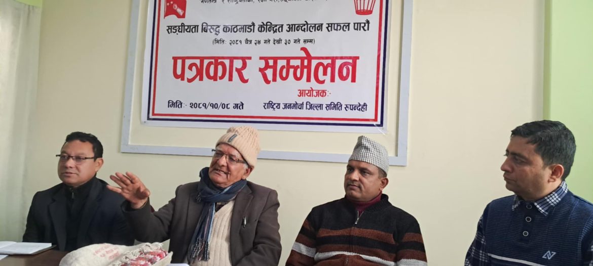 रुपन्देही अध्यक्ष टानबहादुर केसीले पत्रकार सम्मेलनमार्फत आन्दोलनको योजना प्रस्तुत गरे। मंसिर महिनाभर जिल्ला र टोल तहका बैठक र भेलाहरू हुने जानकारी दिए। यस्तै, पर्चा वितरण, भित्ते लेखन, जभेटघाट, र माघ १० देखि १२ सम्म जिल्लाभर घुम्ति कोणसभा आयोजना गरिने बताए।