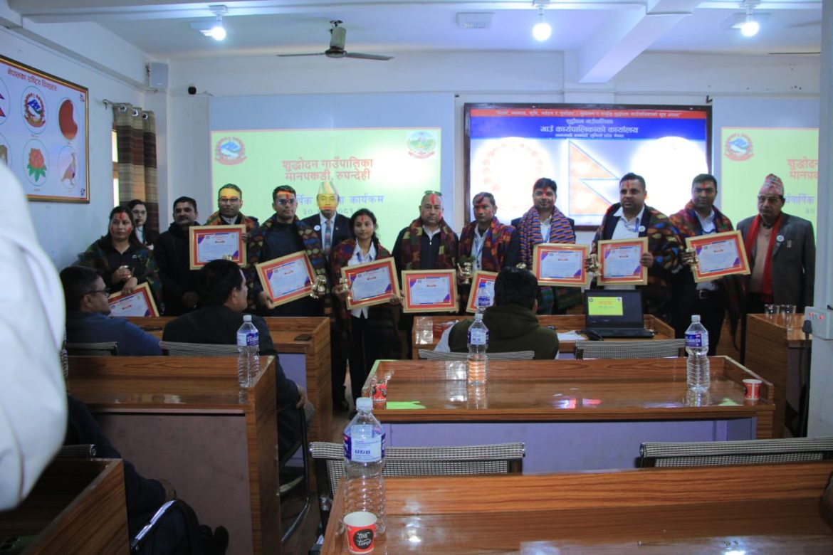 गाउँपालिकामा उत्कृष्ट कार्य प्रदर्शन गर्ने कर्मचारीहरूलाई प्रमाणपत्र र नगदराशिसहित सम्मान गरिएको छ।