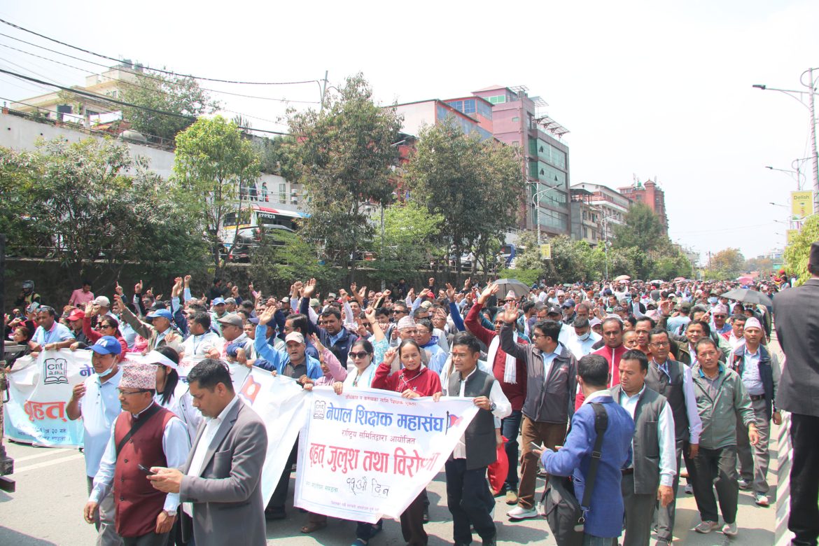 सरकारले भर्ना अभियान घोषणा गरेको छ । तर महासंघले विद्यालय बन्द गर्ने निर्णय गरेको छ। ‘स्कुल बन्द गर्ने निर्णय गरेका छौं,’ अध्यक्ष सुवेदीले भने । विद्यालय शिक्षा ऐन जारी गर्न माग गर्दै महासंघको नेतृत्वमा २० चैतदेखि शिक्षकहरूले सडक आन्दोलन गरिरहेका छन् । महासंघले शैक्षिक हड्ताल समेत घोषणा गरेको छ ।