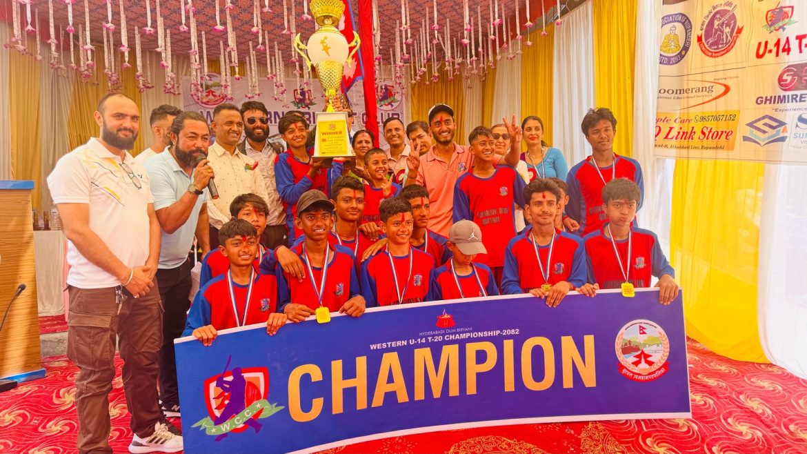 बुटवल । वेष्ट्रन क्रिकेट एकेडेमीको आयोजनामा सम्पन्न १४ वर्षमुनिको वेस्टर्न क्रिकेट कप २०८१–८२ को फाइनल खेलमा आयोजक टोली वेष्ट्रन क्रिकेट एकेडेमीले देवदह क्रिकेट युनिटलाई १३ रनले पराजित गर्दै उपाधि हात पारेको छ।