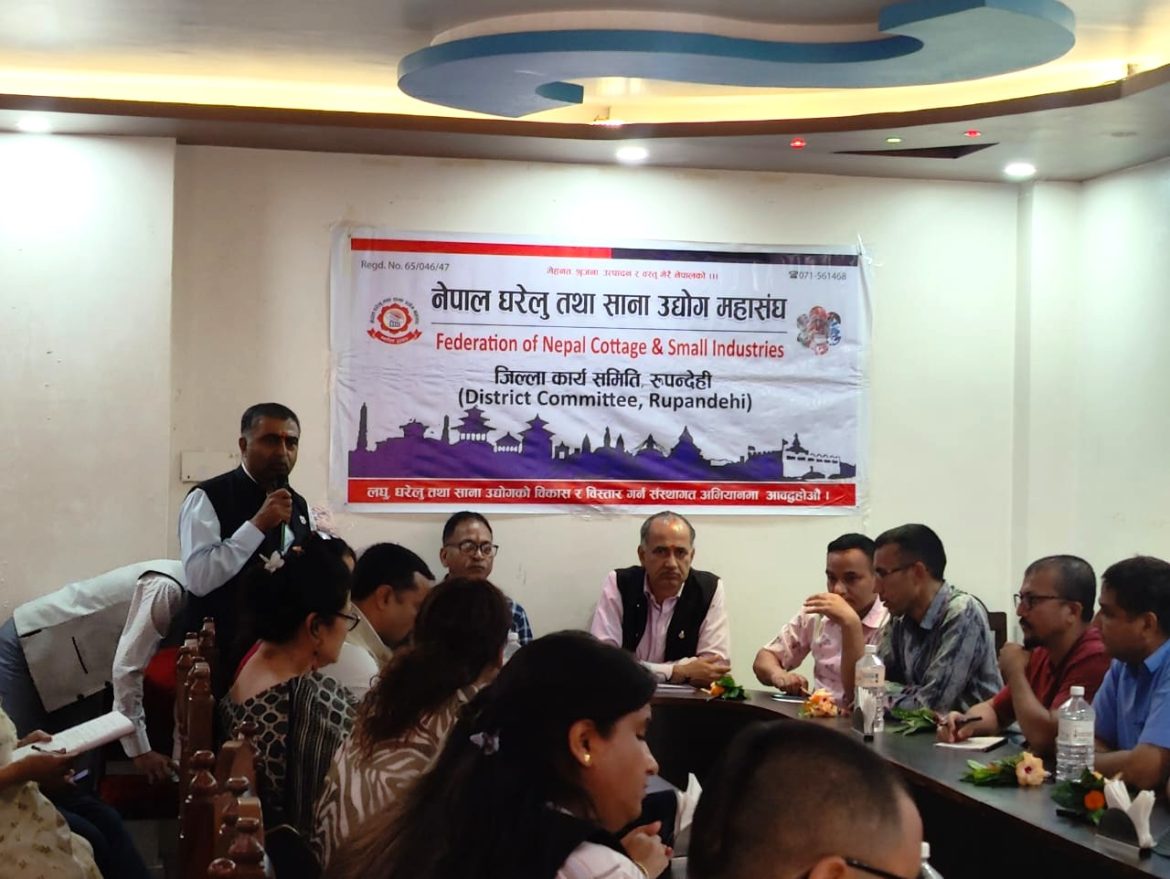 रुपन्देहीमा नेपाल घरेलु तथा साना उद्योग महासङ्घ र कोशी प्रदेश उद्योग मन्त्रालयबीच अन्तर्क्रिया कार्यक्रम सम्पन्न