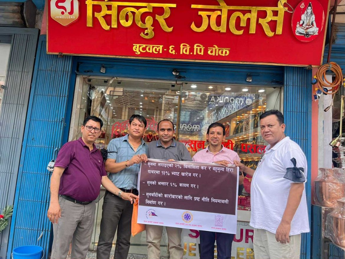 नेपाल सुनचादी व्यवसायी महासंघ, नेपाल सुनचादी रत्न तथा आभुषण महासंघ र नेपाल हस्तकला महासंघले संयुक्त रुपमा सरकारले आगामी आर्थिक वर्ष २०८२–०८३ को बजेट वक्तव्य मार्फत सुन तथा सुनका गहनामा २ प्रतिशत विलासिता कर लगाउने र हिरा जवाहरत लगायत बहुमूल्य बस्तुमा १३ प्रतिशत भ्याट लगाउने घोषणा गरेपछि त्यसको खारेजीको माग गर्दै अरणबद्ध आन्दोलनको घोषणा गरेका हुन ।