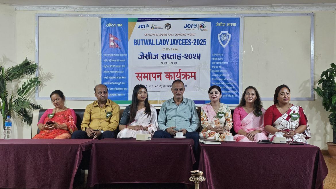 समापन कार्यक्रम बुटवल लेडी जेसीजकी अध्यक्ष रुपा श्रेष्ठको अध्यक्षतामा सम्पन्न भएको थियो। कार्यक्रममा नेपाल चिकित्सक संघका अध्यक्ष डा. कृष्ण खरेल, बुटवल जेसीज अध्यक्ष मोहन न्यौपाने, लेडी जेसीजका पूर्व अध्यक्षहरू बालकुमारी भण्डारी र राधिका पोखरेल, कार्यक्रम संयोजक रुपा श्रेष्ठ पाठक, समापन कार्यक्रम संयोजक विनु रिजाल लगायतले महिला नेतृत्व, क्षमता विकास र सामाजिक योगदानका विषयमा आ–आफ्ना विचार राखेका थिए।