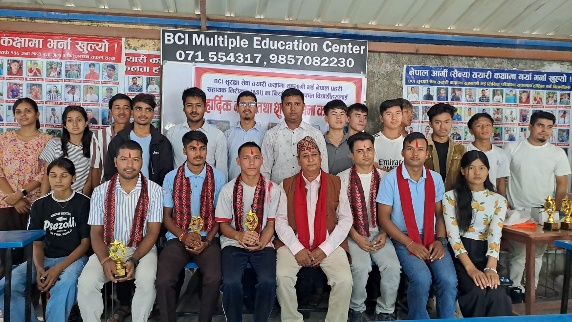 शुक्रबार बिसिआईको सभाहलमा आयोजित कार्यक्रममा सफल विद्यार्थीलाई मायाको चिनो र खादा लगाएर सम्मान गरिएको थियो। असईमा नियुक्ति पाउन सफल अशोक पौडेल, राजेन्द्र शर्मा, बुद्ध सिंह नेपाली, अरुण हुमजाली र डिलाराम अर्याललाई विशेष सम्मान गरिएको हो।