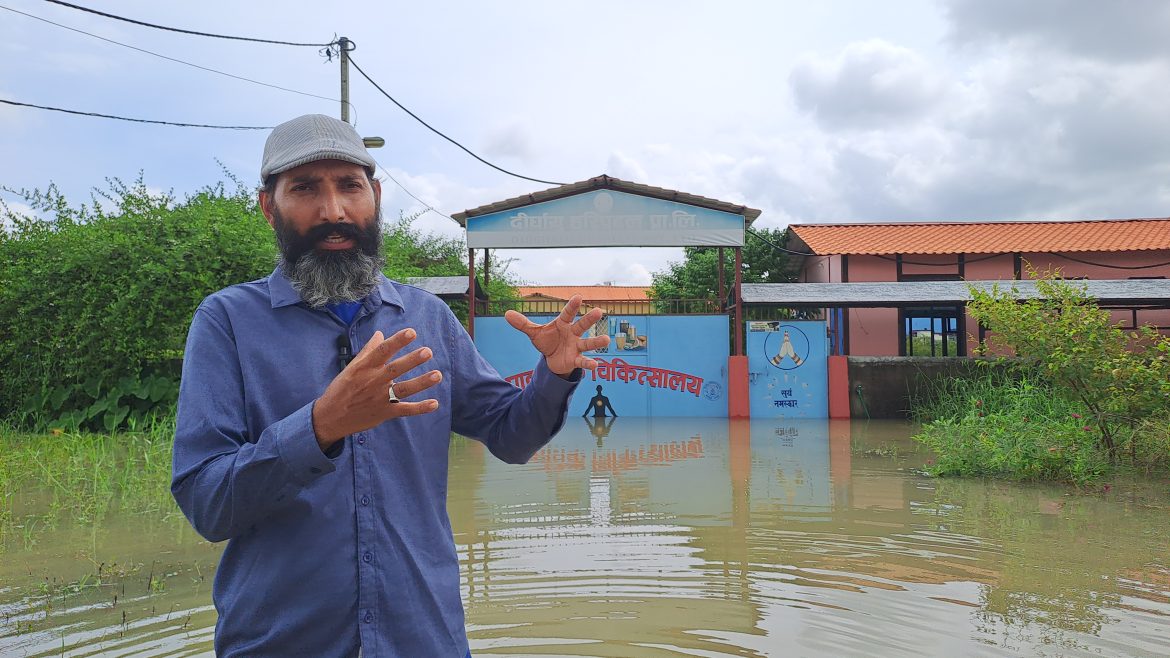 बुटवल । आइतबार राति देखि परेको अविरल वर्षाले तिलोत्तमा–५ मणिग्राममा रहेको दीर्घायु अस्पताल डुबानमा परेको छ। पानीको निकास अवरुद्ध हुँदा १५ शैय्याको प्राकृतिक चिकित्सालय पूरै जलमग्न भएको हो। डुबानका कारण अस्पतालको उपचार सेवा प्रभावित बनेको छ।