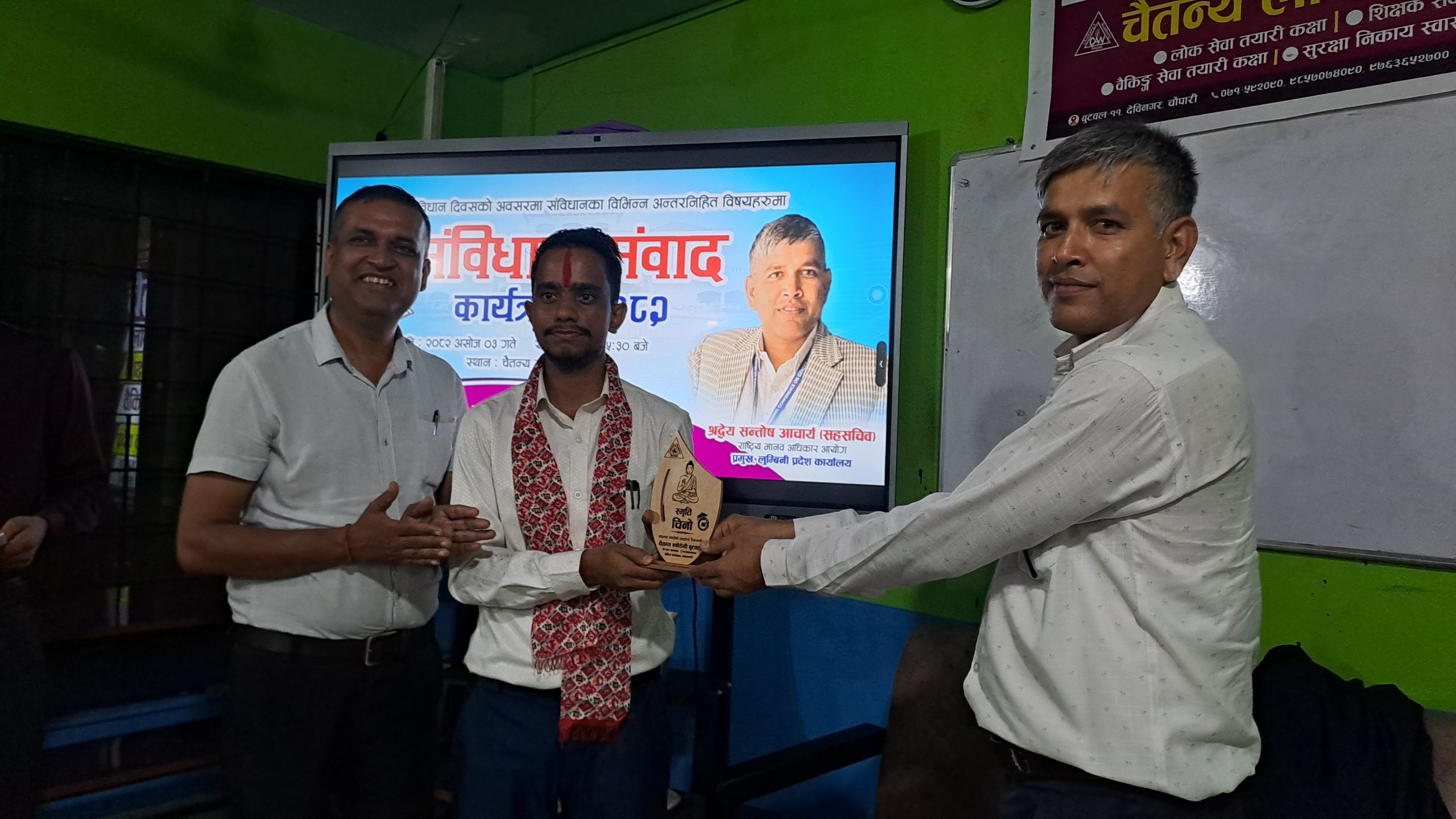 बुटवल । १० औं संविधान दिवस–२०८२ को अवसरमा बुटवल देविनगरस्थित चैतन्य एकेडेमीले शुक्रबार अन्तक्र्रिया कार्यक्रम सम्पन्न गरेको छ।