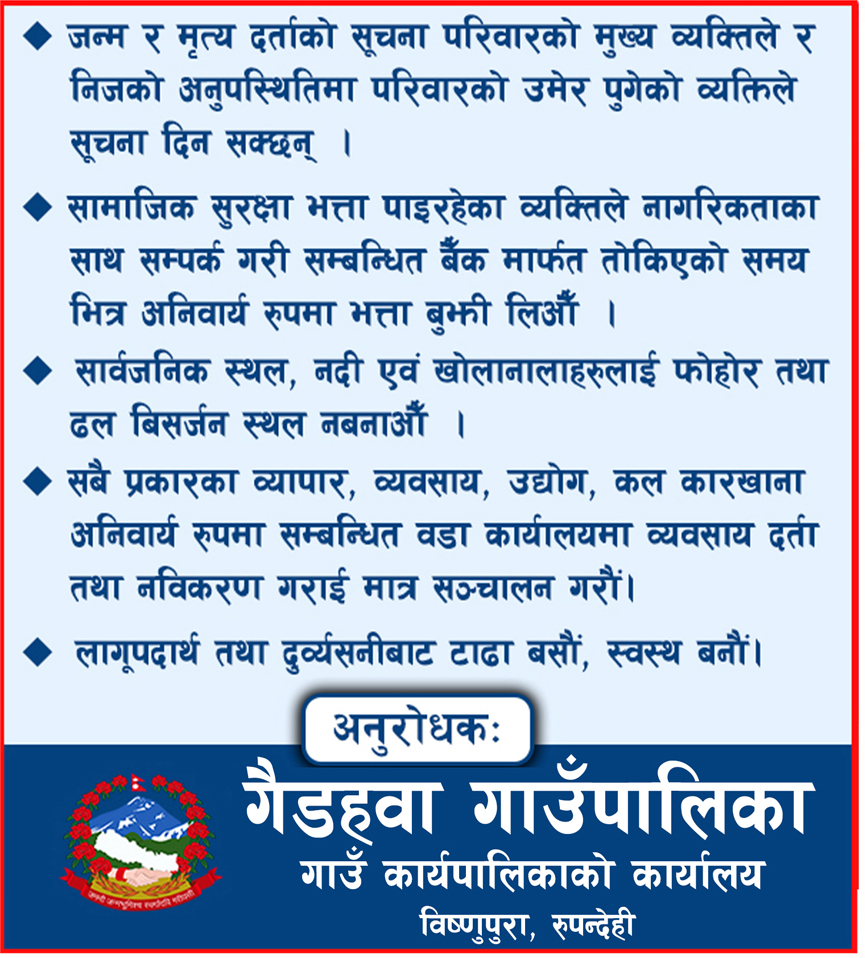 लु ५१ प ९४१४ नम्बरको स्कुटर अनियन्त्रित भई दुर्घटनामा परेको प्रहरीले जनाएको छ। दुर्घटनामा देवदह नगरपालिका–१० भलुहीकी ३८ वर्षीया विद्या शाही गम्भीर घाइते भएकी थिइन्।
